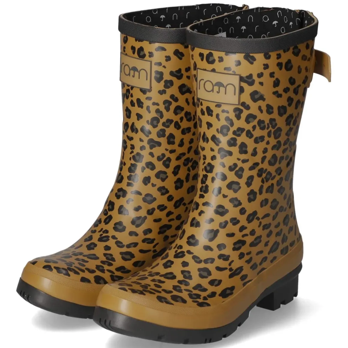 Der Gummistiefel LEOPARD von Rajn verbindet funktionale Wettertauglichkeit mit markantem Animal Print. Das wasserfeste Obermaterial aus Gummi und die wasserabweisende Ausrüstung schützen zuverlässig, während der verstärkte Fußrahmen und die stabile, rutschhemmende Laufsohle sicheren Halt bieten. Ein 3 cm hoher Blockabsatz und die runde Spitze sorgen für komfortables Abrollen. Innen schmeichelt leichtes Textil, die gepolsterte Wechseldecksohle entlastet spürbar und kann bei Bedarf gewechselt werden. Der verstellbare Einstieg hinten optimiert die Passform, das Markenemblem akzentuiert die lässige Optik. Ohne Verschluss und größengetreu fallend ist das Modell schnell angezogen und ideal für nasse Tage in Stadt und Natur. Modetipp: Mit beigem Trench, grober Stricksocke in Camel und dunkler Skinny-Denim entsteht ein harmonischer Ton-in-Ton-Look, der den Leopard-Print elegant rahmt.