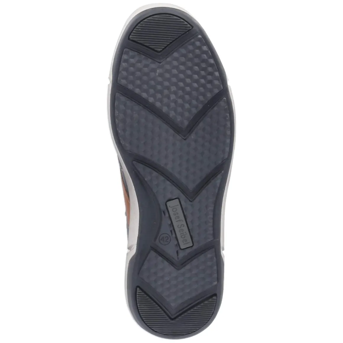 Der Herren-Halbschuh ENRICO von Josef Seibel verbindet sportliche Optik mit durchdachter Funktion. Dunkelblaues, langlebiges Echtleder trifft auf braune Details und eine runde Schuhspitze für zeitlosen Look. Die Kombination aus Schnürsenkeln und zusätzlichem Reißverschluss erleichtert das An- und Ausziehen, während der verstärkte Zehen- und Fersenbereich Robustheit verleiht. Ein gepolsterter Einstieg und die gepolsterte, herausnehmbare Lederdecksohle sorgen für komfortables Tragegefühl, auch an langen Tagen. Die flexible, griffige Laufsohle bietet zuverlässigen Halt in der City. Das Modell fällt normal aus und eignet sich dank Wechselfußbett auch für individuelle Einlagen. Modetipp: Die braunen Akzente harmonieren mit einem Ledergürtel in Cognac und einer dunkelblauen Jeans; dazu ein hellgrauer Strickpullover für einen lässig-smarten Abschluss.