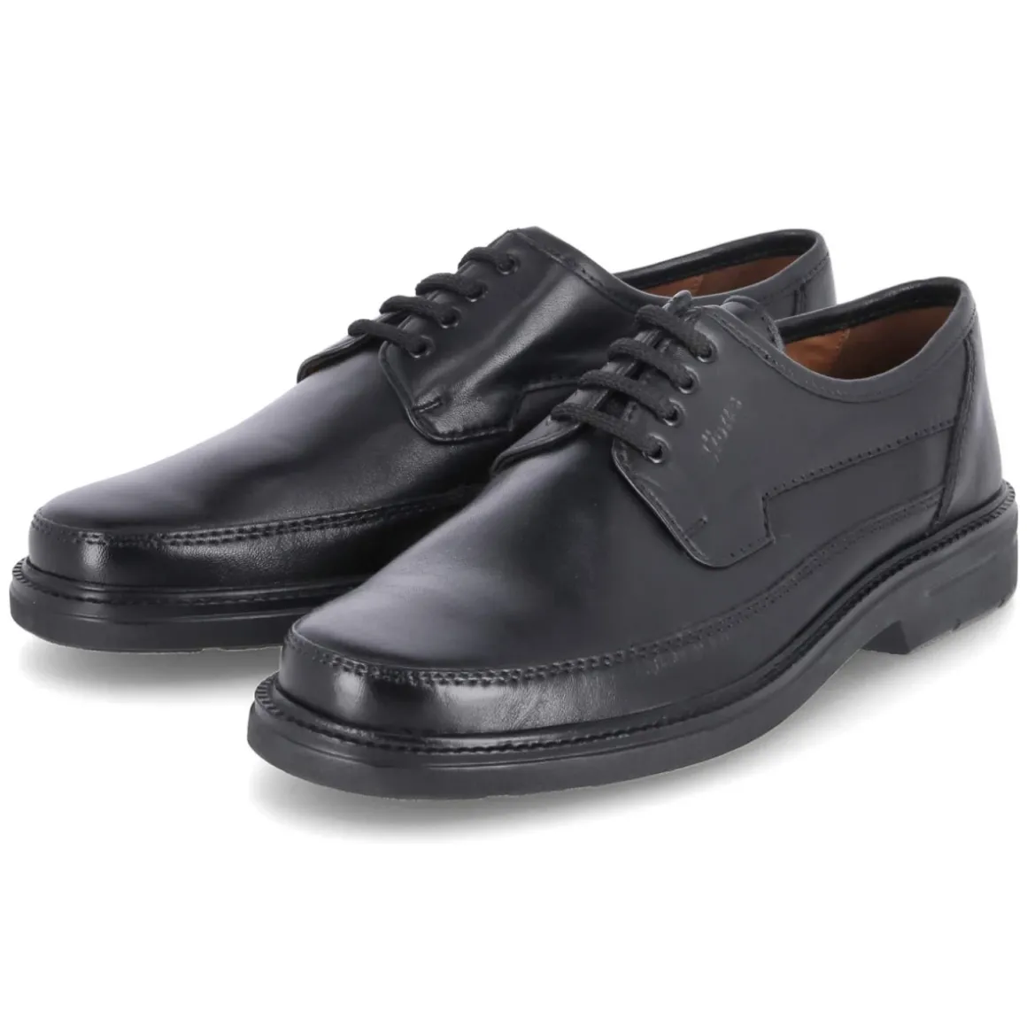 Halbschuhe MARCEL von Sioux verbinden maskuline Eleganz mit alltagstauglichem Komfort. Das Obermaterial aus langlebigem Echtleder in schwarzem Glattleder präsentiert sich dezent mit feinen Ziernähten und einer runden Kappe. Ein Blockabsatz von 3,5 cm sorgt für souveränen Stand, während die flexible Laufsohle mit leichtem Profil verlässlich greift. Als relaxtes Leichtgewicht entlastet das Modell lange Tage im Büro oder auf Reisen. Die hautfreundliche Lederdecksohle und das auswechselbare Fußbett bieten ein angenehmes Klima und individuelle Anpassung. Schnürsenkel und verstärkte Ferse garantieren sicheren Halt, die Linienführung bleibt dabei stets klassisch. Modetipp: In Kombination mit schmaler Wollhose und ungefüttertem Mantel entsteht ein moderner Business-Look, der auch nach Feierabend zur dunklen Jeans überzeugt.