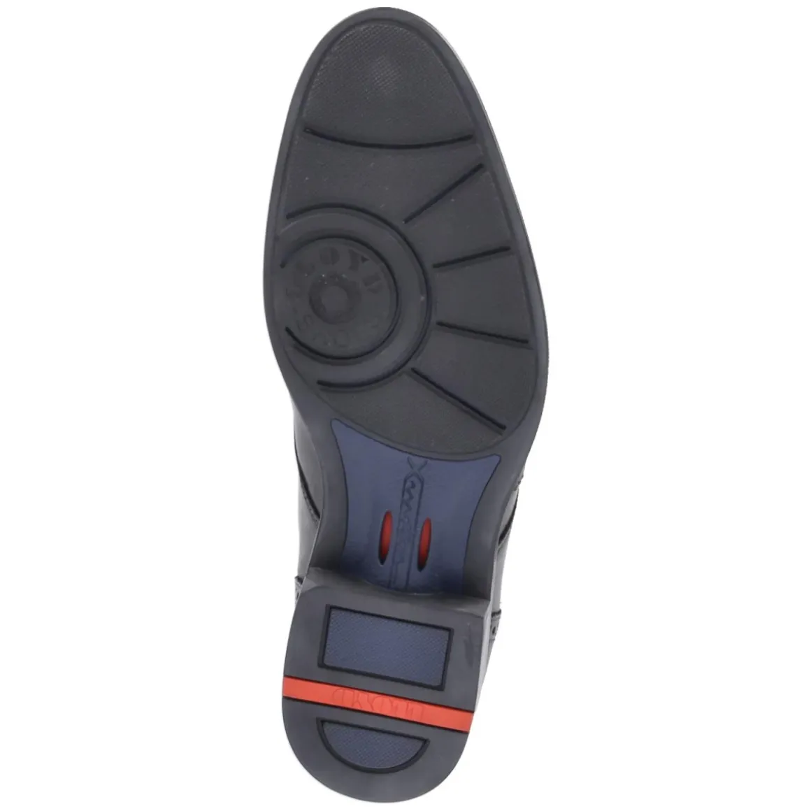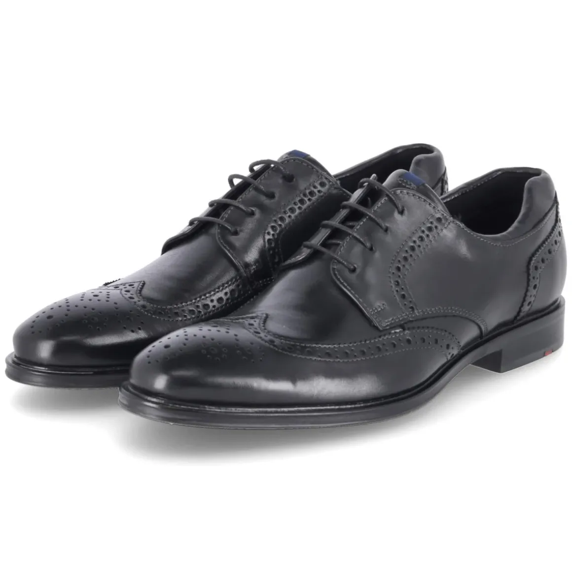 Der Halbschuh MARIAN von LLoyd inszeniert klassische Eleganz mit moderner Funktion. Glattes, langlebiges Echtleder in tiefem Schwarz und ein präzises Budapester Lochmuster prägen die edle Optik, während die runde Spitze zeitlosen Komfort sichert. Der 3 cm hohe Blockabsatz vermittelt stabilen Stand, die flexible, griffige Laufsohle unterstützt auf urbanem Untergrund. Ein gepolsterter Einstieg, das atmungsaktive, gepolsterte Wechselfußbett mit X-Motion-Technologie und die textile Decksohle erhöhen den Tragekomfort spürbar und ermöglichen bei Bedarf den Austausch gegen eigene Einlagen. Die Schnürung sorgt für sicheren Halt, der Passformhinweis fällt normal aus, was die Größenauswahl erleichtert. Ein vielseitiger Begleiter für Business, Event und gehobenes Smart Casual. Modetipp: Mit marineblauem Anzug, feinem Leder-Gürtel und dezent gemusterten Socken entsteht ein souveräner Auftritt vom Meeting bis zum Dinner.