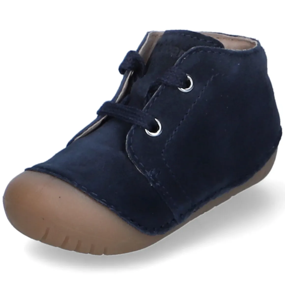 Diese blauen Halbschuhe von Richter vereinen kindgerechten Komfort mit hochwertiger Verarbeitung. Weiches Rauleder formt ein robustes Obermaterial, Ziernähte setzen dezente Akzente. Die runde Schuhspitze und die flexible, rutschhemmende Laufsohle mit schützender Zehenkappe unterstützen natürliche Abrollbewegungen im Alltag, ob auf dem Spielplatz oder auf dem Schulweg. Innen sorgt Lederfutter für ein angenehmes Fußklima, die hautfreundliche, weiche Lederdecksohle ist herausnehmbar und erleichtert das Lüften oder den Einsatz eigener Einlagen. Durch die Schnürung lässt sich der Sitz präzise anpassen, der leicht gepolsterte Einstieg schmiegt sich sanft an. Das langlebige Echtleder verspricht eine lange Tragedauer. Der Größenhinweis fällt normal aus. Modetipp: Zu einer dunkelblauen Jeans und einem gestreiften Longsleeve entsteht ein zeitloser Look, der mit einer leichten Übergangsjacke harmonisch abgerundet wird.