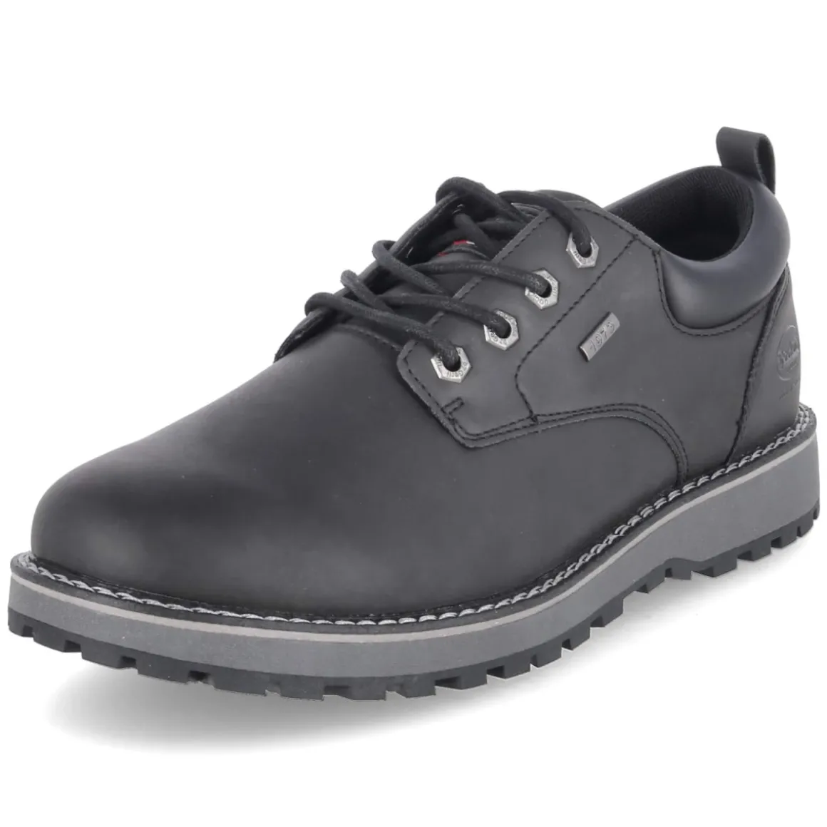 Der Halbschuh von Dockers in zeitlosem Schwarz vereint klassisches Design mit funktionalen Details für den Alltag. Das synthetische Obermaterial zeigt sich pflegeleicht und formstabil, die runde Spitze und die sichere Schnürung sorgen für einen cleanen Look. Eine flexible, griffige Laufsohle bietet soliden Halt auf verschiedenen Untergründen, während die verstärkte Ferse Stabilität gibt. Der gepolsterte Einstieg und das weich gepolsterte, herausnehmbare Fußbett erhöhen den Tragekomfort und erlauben den Einsatz eigener Einlagen. Die textile Decksohle unterstützt ein angenehmes Fußklima, ideal für lange Tage im Büro oder in der Stadt. Die Passform fällt normal aus und eignet sich damit unkompliziert für erwachsene Herren. Modetipp: Mit schwarzer Slim-Fit-Jeans, weißem Oxford-Hemd und einer leichten Harrington-Jacke entsteht ein smarter City-Look, der sich mühelos vom Meeting zum After-Work übertragen lässt.