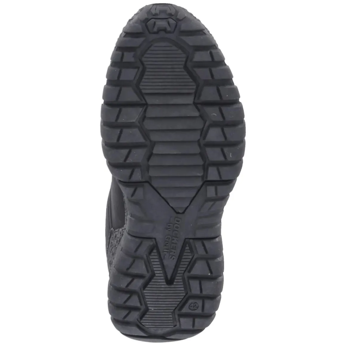 Der Dockers Halbschuh in klassischem Schwarz vereint gepflegte Optik und alltagstauglichen Komfort. Das robuste Obermaterial aus Synthetik zeigt sich besonders pflegeleicht, während die textile Decksohle ein angenehmes Fußgefühl unterstützt. Ein komfortables Wechselfußbett ermöglicht individuelle Anpassungen und lässt sich bei Bedarf einfach austauschen. Die runde Schuhspitze bietet natürlichen Platz, die Schnürung sorgt für sicheren Halt. Eine sehr flexible, rutschfeste Profilsohle gewährleistet Stabilität auf verschiedensten Untergründen, verstärkter Zehen- und Fersenbereich steigert die Langlebigkeit. Anziehlaschen und gepolsterter Einstieg erleichtern den Einstieg und erhöhen den Tragekomfort. Der Schnitt fällt normal aus und eröffnet vielseitige Kombinationsmöglichkeiten vom Büro bis zur Freizeit. Modetipp: Zu schmalen Chinos und einem dunklen Strickpullover entsteht ein cleaner Look, der mit einem leichten Overshirt modern abgerundet wird.
