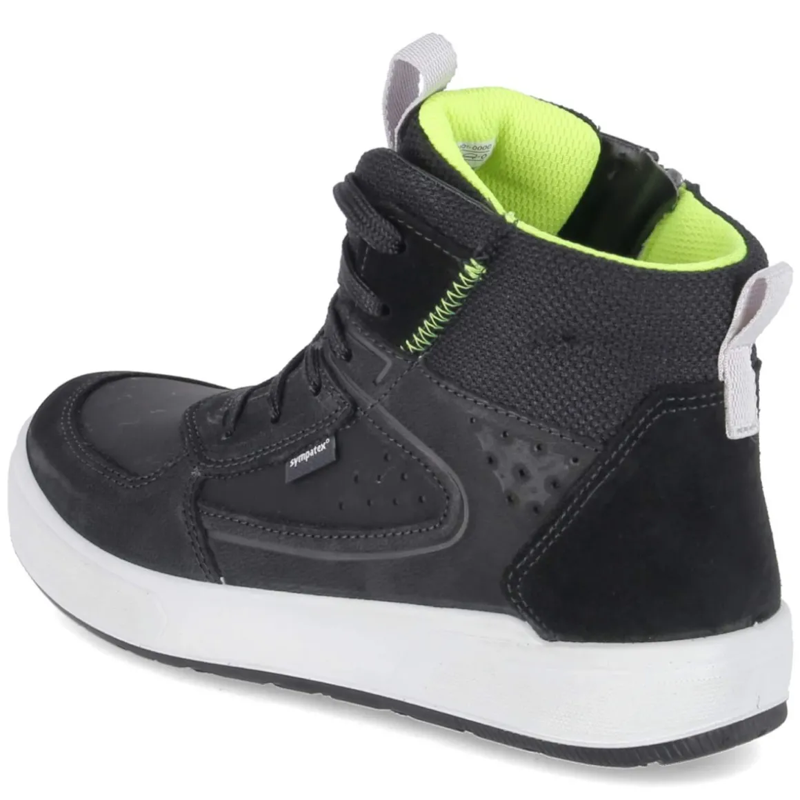 Der High Sneaker MAVERICK von Superfit ist der verlässliche Begleiter für aktive Grundschulkinder. Der schwarze Material-Mix aus Synthetik, Leder und Textil punktet mit wasserabweisenden Eigenschaften und einer Sympatex-Ausstattung, die Schutz und Atmungsaktivität verbindet. Ein gepolsterter Einstieg, die textile Decksohle und die runde Schuhspitze sorgen für hohen Tragekomfort, während das leichte Futter an kühlen Tagen wärmt. Die Kombination aus Schnürsenkeln und praktischem Reißverschluss erleichtert das An- und Ausziehen, Anziehlaschen unterstützen zusätzlich. Eine rutschfeste Laufsohle gibt sicheren Halt, der verstärkte Fersen- und Zehenbereich erhöht die Stabilität im Alltag. Der Passformhinweis fällt normal aus erleichtert die Größenauswahl. Modetipp: Besonders stimmig wirkt der Sneaker zu dunklen Jeans, Softshell-Jacke und Beanie – ein cleaner Look, der auf dem Schulhof und in der Stadt funktioniert.
