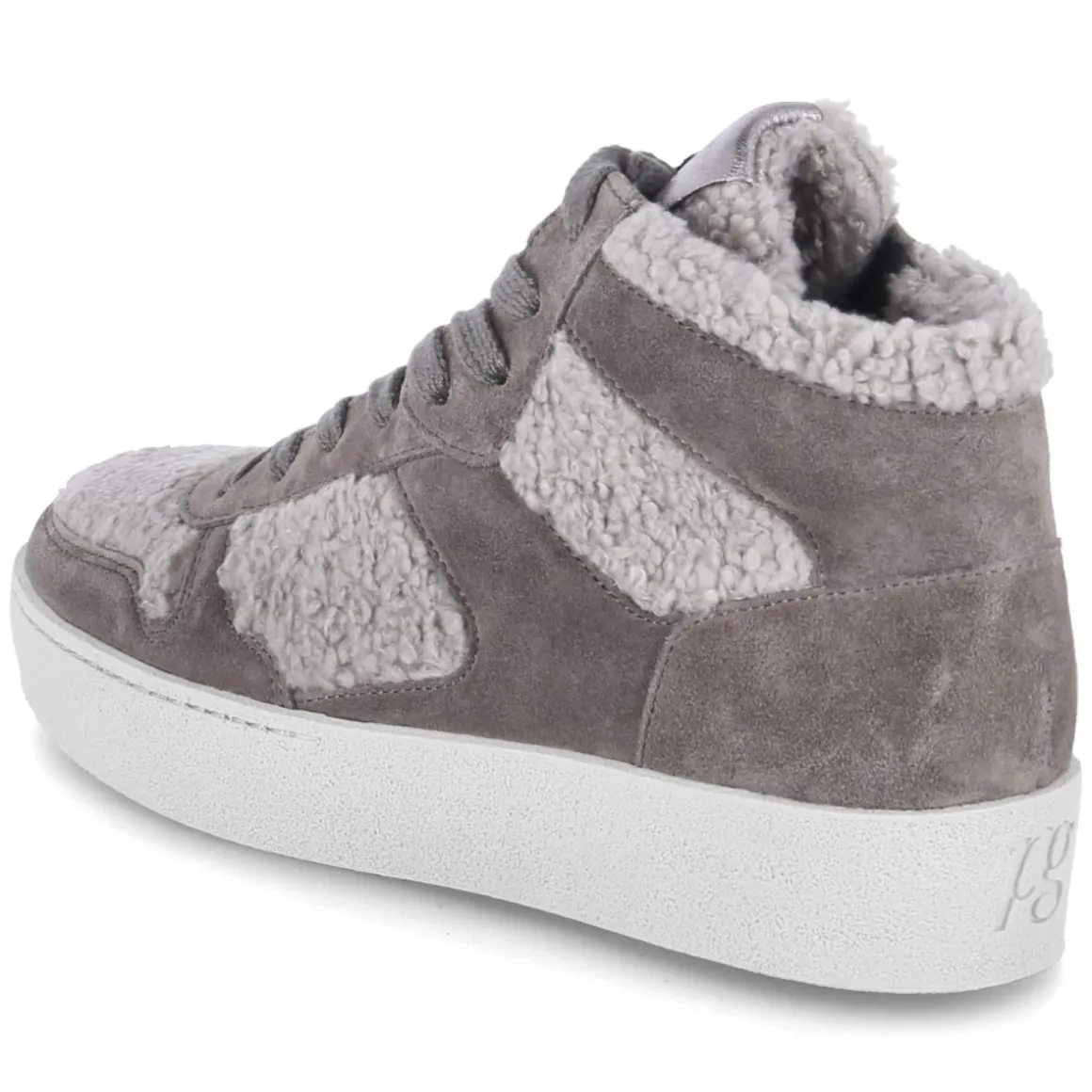 Der High Sneaker von Paul Green in edlem Grau verbindet urbanen Look mit durchdachtem Komfort. Der moderne Material-Mix aus Leder und Textil erhält durch Teile in Teddyplüsch eine weiche, aktuelle Note. Warmfutter und gepolstertes Fußbett umschließen den Fuß angenehm, während der gepolsterte Einstieg Druck nimmt. Für Stabilität sorgen verstärkte Fersen- und Zehenbereiche, die runde Spitze bietet genügend Raum. Praktisch im Alltag: die Kombination aus Schnürsenkeln und Reißverschluss für schnellen Einstieg. Dank Wechselfußbett lässt sich individuelle Einlage einfach integrieren. Der Schnitt fällt normal aus und eröffnet vielfältige Styling-Optionen von lässig bis chic. Modetipp: Ton-in-Ton mit grauem Wollmantel und Strick in Naturtönen kombinieren, dazu eine gerade Jeans – die Mischung aus soften Materialien bringt den Look elegant zur Geltung.