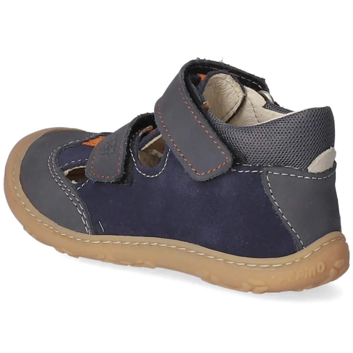 Der Kinder-Klettschuh EBI von Pepino überzeugt in sattem Blau und vereint kindgerekten Komfort mit robusten Materialien. Atmungsaktives Echtleder in Rauleder-Qualität und ein angenehmes Lederfutter sorgen für ein ausgeglichenes Fußklima, während die runde Schuhspitze und die Weite Mittel reichlich Bewegungsfreiheit lassen. Zwei praktische Klettverschlüsse erleichtern das An- und Ausziehen und fixieren den Fuß sicher. Der verstärkte Zehen- und Fersenbereich schützt bei jedem Schritt, ein gepolsterter Einstieg und das weich gepolsterte, herausnehmbare Fußbett erhöhen den Tragekomfort. Die flexible, rutschhemmende Laufsohle unterstützt natürliches Abrollen und gibt Halt auf glatten Böden. Der Größenhinweis fällt normal aus und bietet verlässliche Orientierung. Orangefarbene Akzente setzen einen frischen Kontrast zum Blau. Modetipp: Mit Denim und farblich abgestimmten Socken in Orange entsteht ein lässiger Look für Kita und Freizeit.