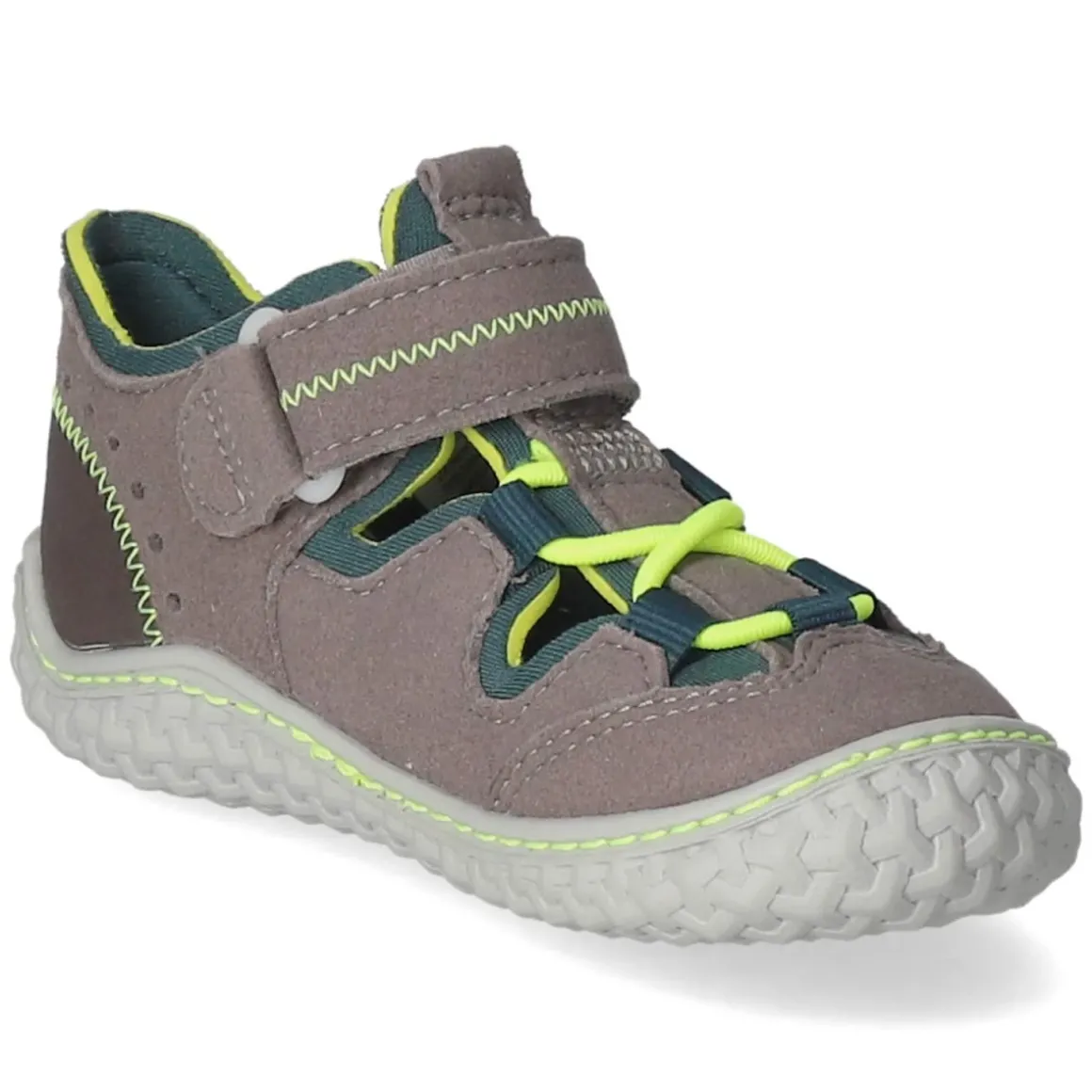 Der Klettschuh JERRY von Pepino verbindet kindgerechten Komfort mit robuster Alltagstauglichkeit. Das graue Obermaterial aus Synthetik wird durch neongrüne Akzente belebt und harmoniert mit vielen Outfits. Die runde Schuhspitze und Weite Mittel geben wachsenden Füßen Bewegungsfreiheit, während verstärkte Zehen- und Fersenbereiche zusätzlichen Schutz bieten. Ein gepolstertes Barefootfußbett mit textilem Bezug federt Schritte sanft ab, die flexible, rutschfeste Laufsohle sorgt für sicheren Halt auf wechselnden Untergründen. Klettverschluss und Elastikband ermöglichen einen schnellen, verlässlichen Sitz, die Anziehlasche erleichtert das Hineinschlüpfen. Pflegeleicht und waschmaschinengeeignet, passt das Modell dank normal ausfallender Größe optimal in den Alltag. Vegan gefertigt und frei von tierischen Bestandteilen. Modetipp: Zu grauen Jogpants und einem Hoodie in Neon- oder Apfelgrün entsteht ein lässiger, sportlicher Look.
