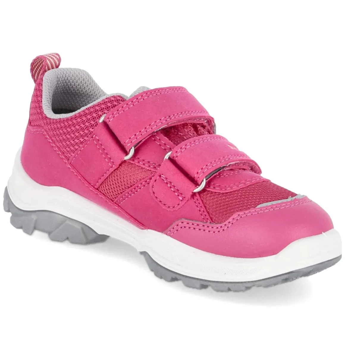 Der Superfit Klettschuh JUPITER präsentiert sich in leuchtendem Pink mit sportlicher Silhouette und rund zulaufender Spitze. Das Obermaterial aus Textil und Synthetik bleibt dank Gore‑Tex wasserfest und gleichzeitig atmungsaktiv, während die wasserabweisende Oberfläche zusätzlichen Schutz bei Nässe bietet. Zwei praktische Klettverschlüsse sorgen für schnellen Halt, die Passform fällt normal aus. Ein gepolsterter Einstieg und das weich gepolsterte, herausnehmbare Wechselfußbett schenken ganztägigen Komfort und ermöglichen die Nutzung eigener Einlagen. Reflektierende Details erhöhen die Sichtbarkeit, verstärkte Zehen- und Fersenbereiche steigern die Robustheit. Die rutschhemmende Laufsohle garantiert verlässlichen Grip auf wechselndem Untergrund. Modetipp: Mit funktionsstarker Softshelljacke und Jeans in Grautönen entsteht ein sportiver Look, farblich abgestimmte Socken setzen einen frischen Akzent zum Pink.