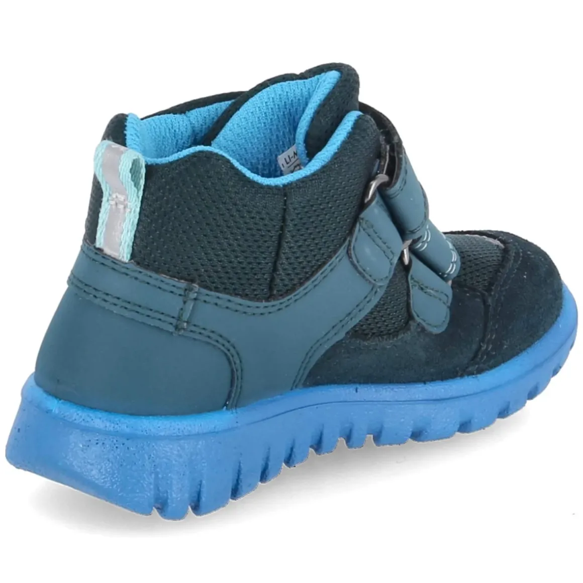 Der Superfit Klettschuh SPORT/MINI präsentiert sich in frischem Blau als zuverlässiger Begleiter für aktive Kleinkinder. Das Obermaterial aus Synthetik, Leder und Textil vereint Robustheit und Tragekomfort, während die GORE-TEX Ausstattung den Schuh wasserfest und zugleich atmungsaktiv macht – ideal für wechselhaftes Wetter. Eine flexible, griffige Laufsohle sorgt für sicheren Halt, die runde Schuhspitze bietet Zehenfreiheit. Praktische Klettverschlüsse und eine Anziehlasche erleichtern das An- und Ausziehen, gepolsterter Einstieg und gepolstertes, herausnehmbares Fußbett erhöhen den Komfort. Reflektierende Details verbessern die Sichtbarkeit, der verstärkte Fersen- und Zehenbereich gibt zusätzlichen Schutz. Mit leichtem Futter für kühle Tage und normaler Passform ist dieses Modell perfekt für den Alltag. Modetipp: Zu Softshelljacke und robuster Cargohose entfaltet das Blau einen sportlichen Look; farblich passende Funktionssocken runden das Outfit ab.