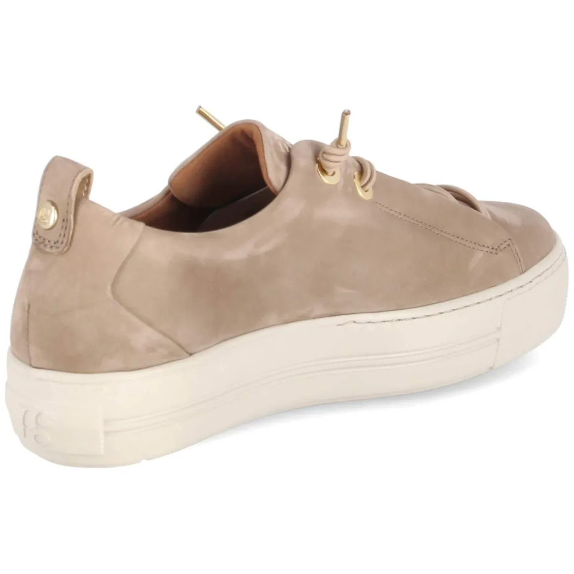 Der Low Sneaker von Paul Green präsentiert sich in sanftem Beige und verbindet edles Rauleder mit samtiger Oberfläche und dezenten goldenen Details. Die runde Spitze und die bequeme Elastikschnürung sorgen für eine moderne, unkomplizierte Silhouette, während die hautfreundliche Lederdecksohle und das gepolsterte Lederfußbett spürbaren Komfort bieten. Eine robuste Cupsohle liefert zuverlässigen Halt im Alltag, der verstärkte Fersenbereich stabilisiert zusätzlich. Das Modell fällt normal aus und begleitet mühelos von Büro bis Wochenendspaziergang. Modetipp: Zu einer cremefarbenen Cropped-Chino und einem leichten Trench entsteht ein eleganter Ton-in-Ton-Look; ein Feinstrickpullover und goldene Accessoires greifen die Metallic-Details stimmig auf.