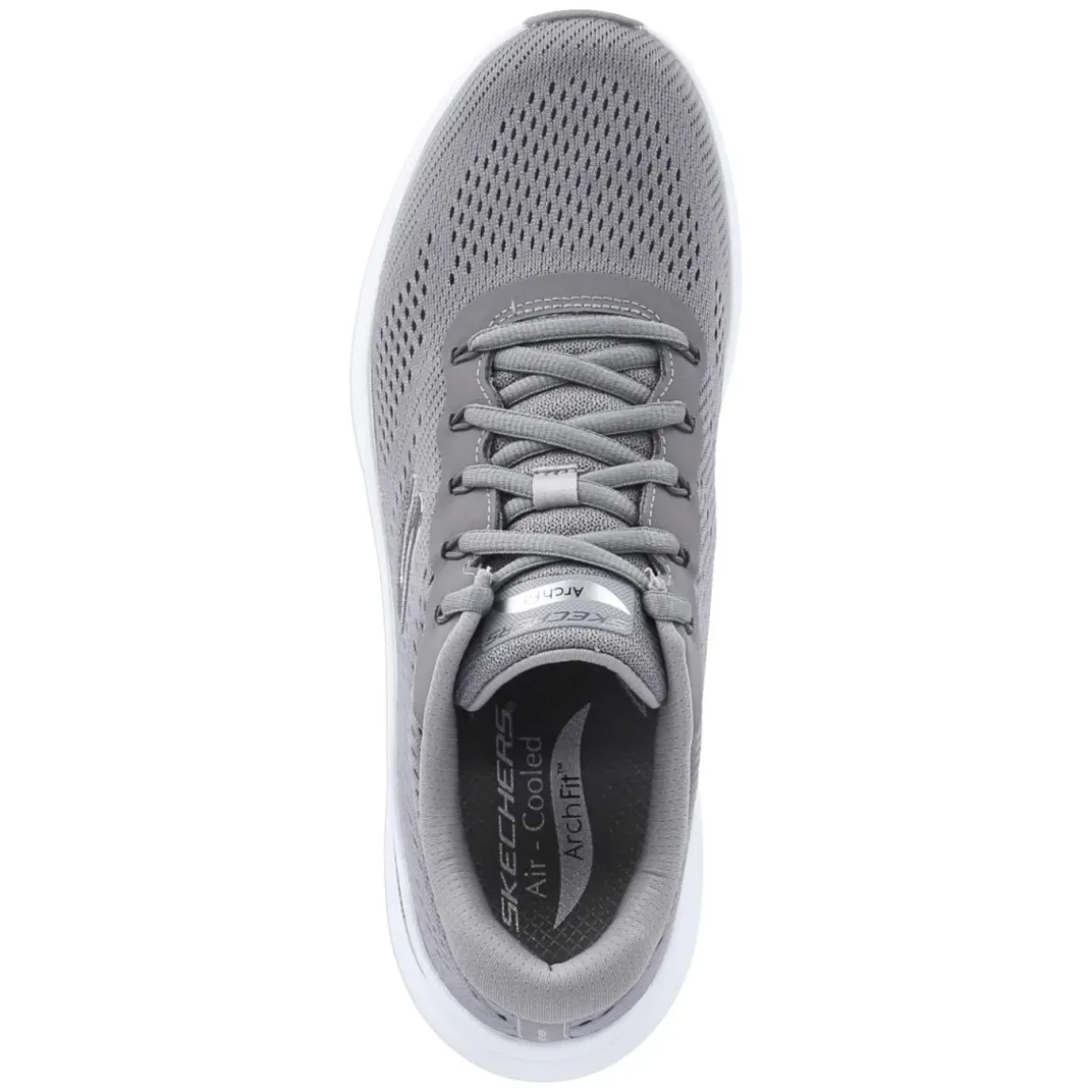Der Low Sneaker ARCH FIT von Skechers bringt entspannten Tragekomfort in den Alltag. Das graue Textil-Obermaterial mit moderner Strick-Optik schmiegt sich leicht an den Fuß, während die runde Spitze und die klassische Schnürung sicheren Halt geben. Innen sorgt der gepolsterte Einstieg gemeinsam mit der vorgeformten, weich unterstützenden Arch Fit Decksohle für spürbare Entlastung bei langen Wegen. Die flexible, rutschhemmende Profilsohle begleitet zuverlässig auf unterschiedlichen Untergründen, der Zehen- und Fersenbereich ist stabilisierend verstärkt. Als relaxtes Leichtgewicht fällt das Modell normal aus und lässt sich unkompliziert pflegen, sogar in der Waschmaschine. Dezente Markendetails runden das cleane Design ab. Vegan gefertigt und damit eine bewusste Wahl. Modetipp: Im tonalen Mix zu grauer Jogpant und Overshirt entsteht ein urbaner Look; mit schwarzer Chino wird es smart-casual.