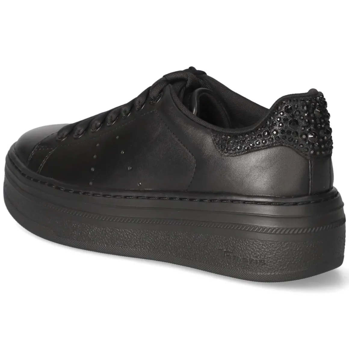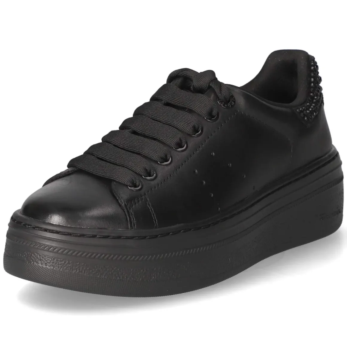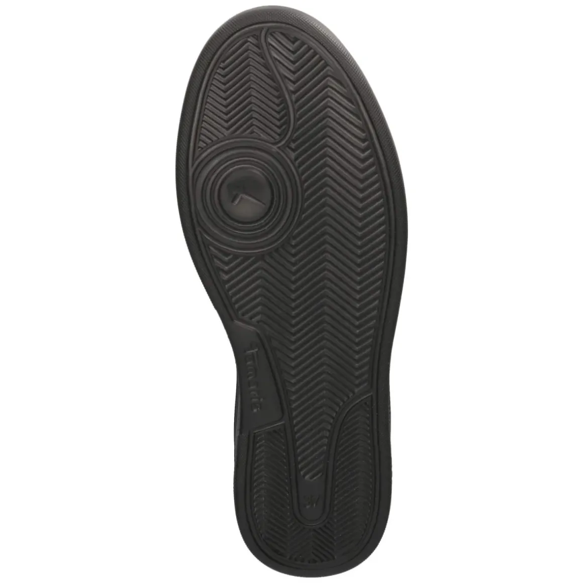Schlichtes Design trifft auf urbanen Chic: Dieser Low Sneaker von Tamaris für Damen präsentiert sich in tiefem Schwarz und überzeugt mit glattem Echtleder, das robusten Alltagseinsatz elegant meistert. Die runde Schuhspitze und der 4,5 cm hohe Plateau-Absatz sorgen für eine moderne Silhouette, während der leicht gepolsterte Einstieg und die rutschfeste Laufsohle Komfort und Halt geben. Dank Schnürung lässt sich der Sitz individuell anpassen, das Wechselfußbett bietet zusätzliche Flexibilität. Die verstärkte Ferse mit feinem Schmucksteinbesatz setzt einen dezenten Akzent. Fällt normal aus und zeigt sich besonders kombinationsfreudig zu Casual- und Smart-Looks. Modetipp: Schwarze Cropped-Jeans, weiße Oversize-Bluse und ein strukturierter Blazer unterstreichen den cleanen Auftritt, ein silbernes Armband greift den Glanz des Fersenbesatzes auf.