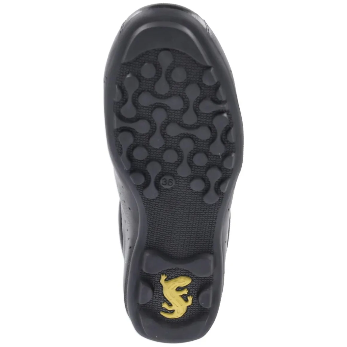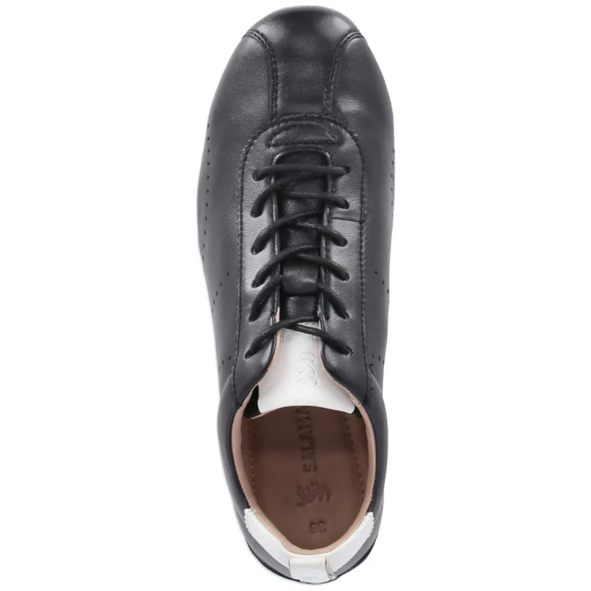 Der Low Sneaker von Salamander in Schwarz vereint zeitloses Design und zuverlässige Alltagstauglichkeit. Glattes Echtleder formt das schlanke Obermaterial, die abgerundete Schuhspitze sorgt für eine feminine Silhouette. Ein gepolsterter Einstieg und das weich unterlegte Lederfußbett verwöhnen bei jedem Schritt, während Zehen- und Fersenbereich verstärkt sind. Die dünne, sehr flexible und rutschhemmende Laufsohle greift sicher und unterstützt ein leichtfüßiges Abrollen. Dank Schnürung lässt sich der Sitz präzise anpassen, das Modell fällt normal aus und bleibt trotz robustem Material angenehm leicht. Zierende Seitenlochungen und dezentes Branding runden den Look ab – ein langlebiger Begleiter vom Office bis zum Wochenendspaziergang. Modetipp: Zur gekürzten Straight-Jeans und einem feinen Stricktop kombinieren; ein schwarzes Overshirt setzt den monochromen Look modern in Szene.