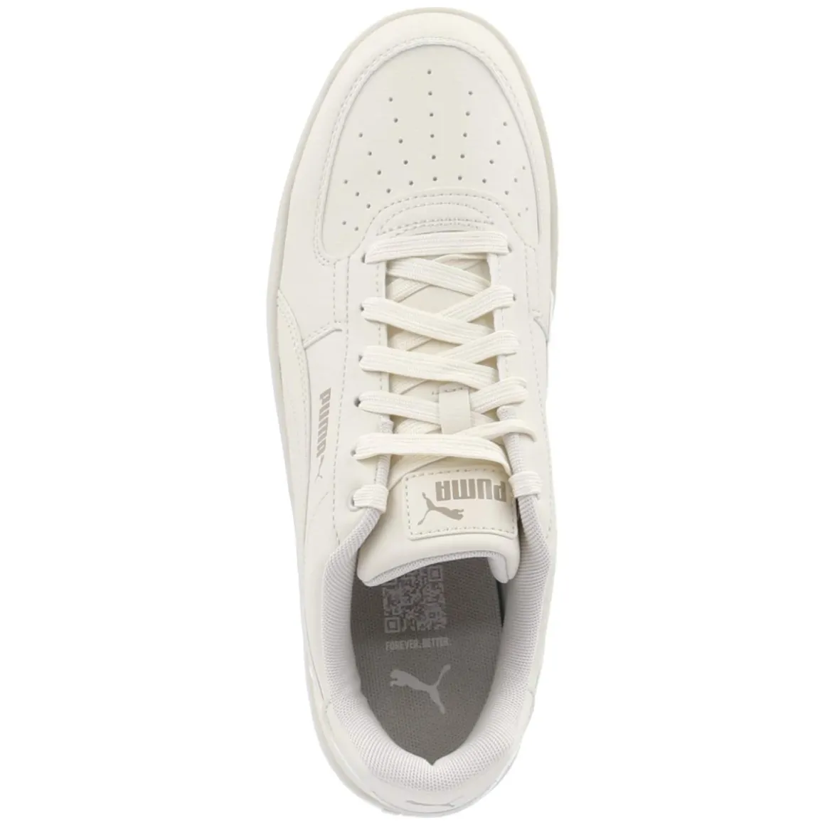 Der Low Sneaker CAVEN 2.0 von Puma verbindet authentische Court-DNA mit urbanem Minimalismus. Das Obermaterial aus pflegeleichter Synthetik zeigt eine dezente Lochung am Schuhdeck, während der ikonische Formstrip die klare Silhouette in Beige betont. Ein rundes Leistenbild und der klassische Schnürverschluss sorgen für zeitlosen Charakter. Innen bietet ein textiles Futter mit komfortablem, herausnehmbarem Wechselfußbett angenehme Dämpfung; der gut gepolsterte Einstieg steigert den Tragekomfort zusätzlich. Verstärkungen an Zehen- und Fersenbereich geben Struktur, die rutschfeste Laufsohle liefert verlässlichen Grip im Alltag. Fällt schmaler aus und empfiehlt sich besonders für schmalere Füße. Modetipp: Mit weit geschnittener Anzughose, cleanem T-Shirt und leichter College-Jacke entsteht ein moderner Retro-Look in Ton-in-Ton-Nuancen.