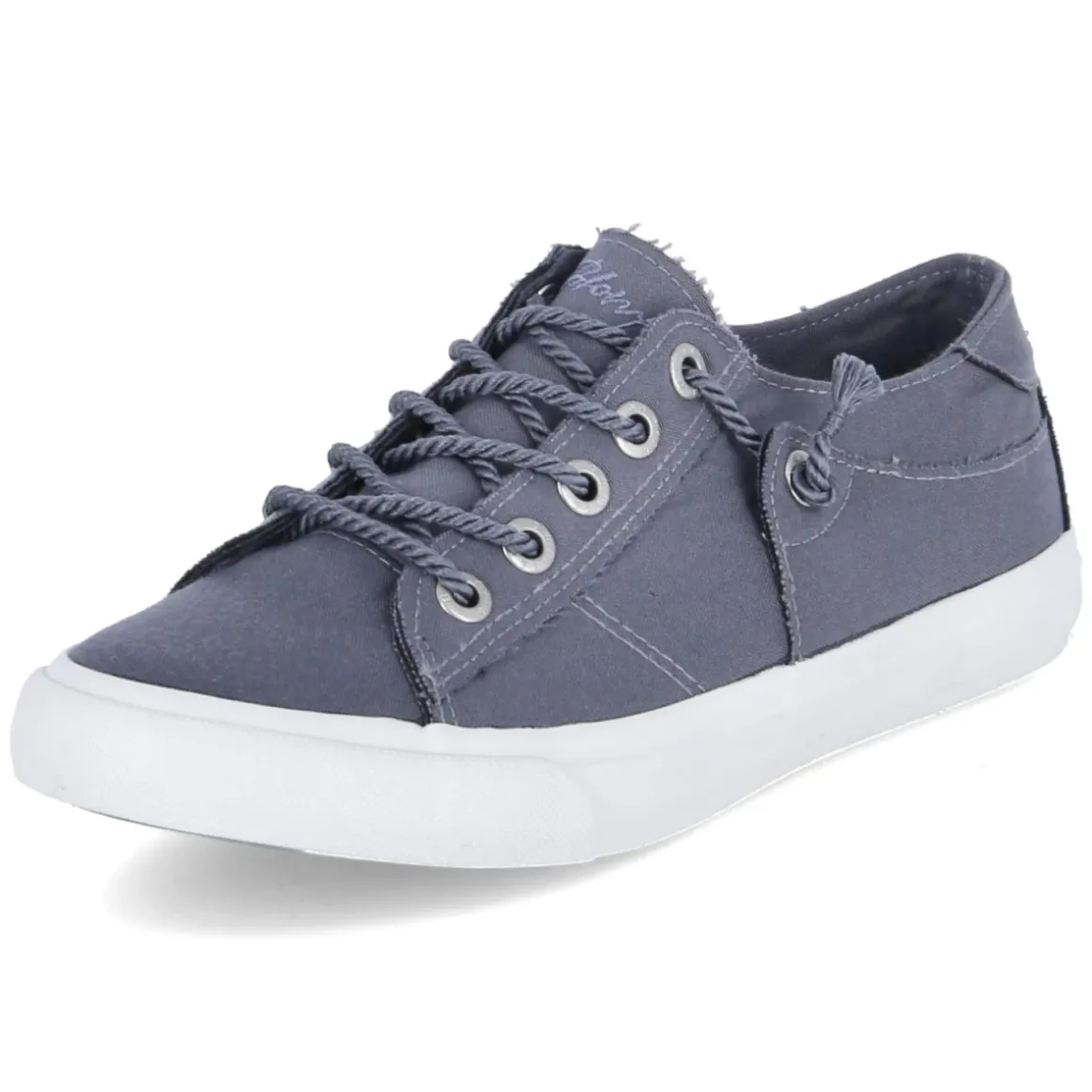 Blowfish Low Sneaker MARTINA bringt lässige Leichtigkeit in den Alltag. Das blaue Modell aus robustem Textil zeigt einen authentischen Used Look, der mit gelabelten Details und runder Kappe sportiv wirkt. Schnürsenkel und nutzbare Zierschnürung mit Kordel sorgen für variablen Halt, während der verstärkte Zehen- und Fersenbereich zusätzliche Stabilität gibt. Innen verwöhnt eine textile Decksohle mit gepolstertem Fußbett, das den Schritt angenehm dämpft. Die flexible, rutschhemmende Laufsohle bietet Grip auf urbanen Wegen. Der Schnitt fällt normal aus und passt bequem zu verschiedensten Fußformen. Dazu überzeugt die komplett vegane Materialwahl, ohne Kompromisse bei Stil und Komfort. Modetipp: Mit Cropped-Jeans, lockerem Strick und einer leichten Utility-Jacke entsteht ein entspanntes City-Outfit, das die blaue Farbe des Sneakers elegant aufgreift.
