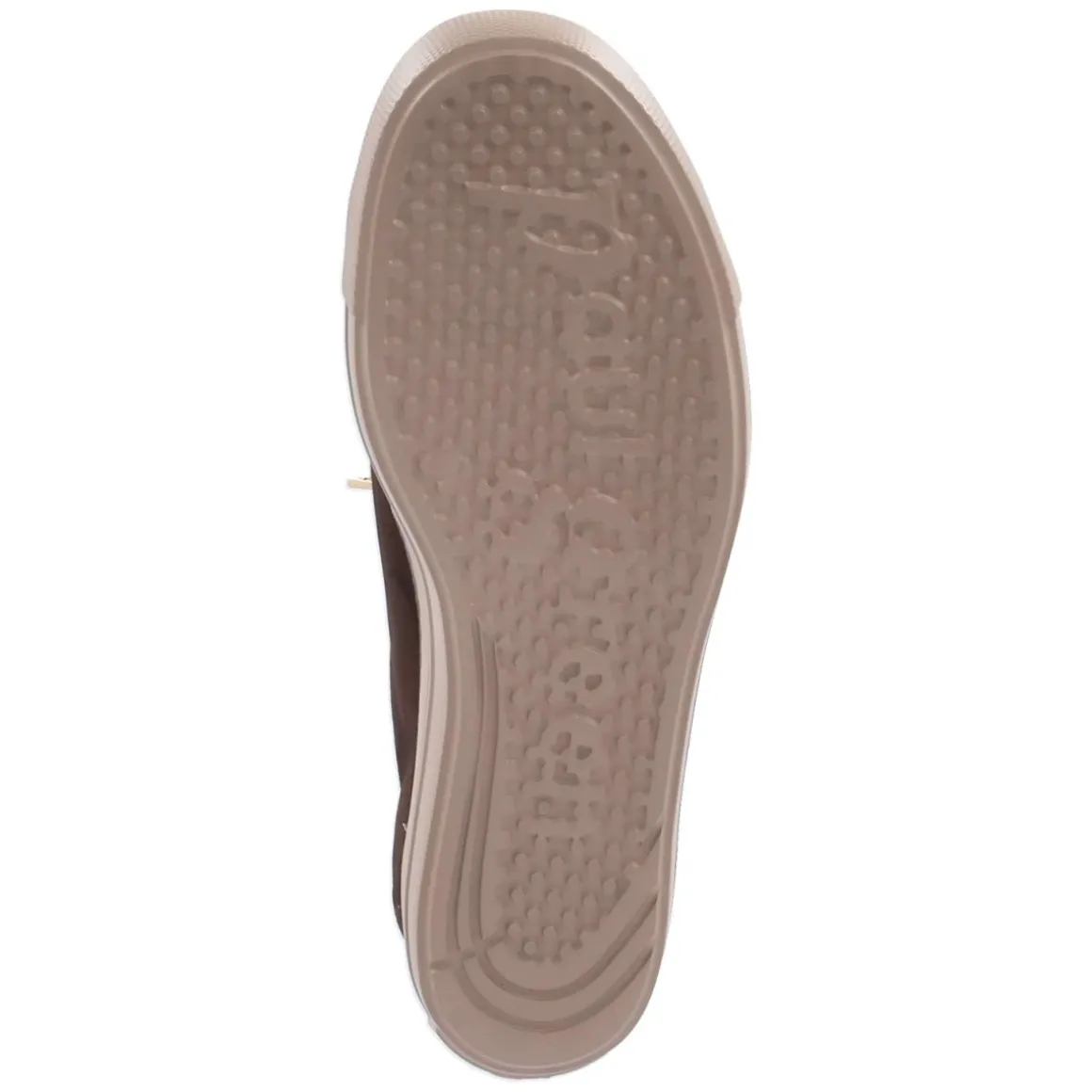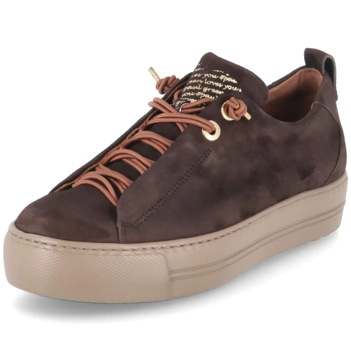 Der Low Sneaker von Paul Green präsentiert sich in tiefem Braun mit edlen goldenen Details und einer weich schimmernden Raulederoberfläche. Die runde Spitze und die verstärkte Ferse sorgen für eine feminine, zugleich robuste Silhouette, während die bequeme Elastikschnürung den Schnürsenkel-Look modern interpretiert und sicheren Halt bietet. Innen verwöhnt eine Decksohle aus Leder, außen trägt eine rutschhemmende Laufsohle mit markanter Cupsohle und schützenden Bumpern durch den Tag. Das 3 cm hohe Plateau verleiht dezent Höhe, ohne auf Komfort zu verzichten. Der Sneaker fällt normal aus und passt sich dem Fuß angenehm an – ein vielseitiger Begleiter für Damen mit Sinn für Qualität und Lässigkeit. Modetipp: Mit dunkel gewaschener Denim, feinem Strick in Creme und einem camelfarbenen Mantel entsteht ein mühelos eleganter City-Look.