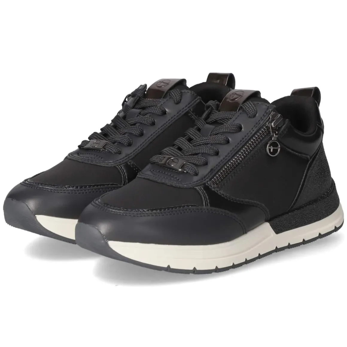 Der Low Sneaker von Tamaris setzt auf eine klare, moderne Silhouette mit runder Spitze und harmonischem Blauton, der je nach Licht fast Schwarz wirken kann. Das Obermaterial aus Textil und Synthetik wird durch eine verstärkte Ferse mit schimmernder Oberfläche und feinen metallischen Akzenten veredelt. Vegane Materialien unterstreichen den zeitgemäßen Anspruch. Für Alltagstauglichkeit sorgen ein angenehm gepolsterter Einstieg, Schnürsenkel in Kombination mit zusätzlichem Reißverschluss sowie eine flexible, rutschfeste Laufsohle. Die gepolsterte, herausnehmbare Decksohle ermöglicht individuelle Anpassung, während der Schnitt normal ausfällt und sofort vertrauten Tragekomfort bietet. Markendetails setzen dezente Highlights und betonen die feminine Low-Silhouette für Erwachsene. Modetipp: Besonders stimmig wirkt der Sneaker zu cropped Straight-Jeans und einem feinen Stricktop; ein nachtblaue Trenchcoat rundet den monochromen Look elegant ab.