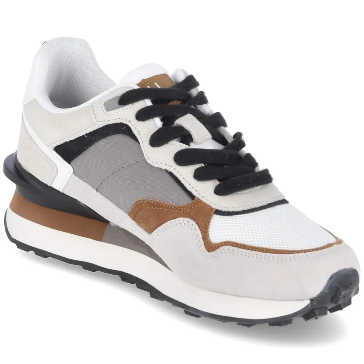 Der Low Sneaker von Bullboxer verbindet urbanen Stil mit spürbarem Komfort. Ein moderner Material-Mix aus Synthetik, Leder und Textil setzt auf dem weißen Grund subtile braune und schwarze Akzente, die dem Design Tiefe geben. Die runde Schuhspitze und der Schnürverschluss sorgen für eine zeitlose Silhouette, während verstärkter Zehen- und Fersenbereich die Alltagstauglichkeit erhöhen. Ein weich gepolsterter Einstieg und das komfortable, herausnehmbare Fußbett liefern den gewünschten Wohlfühlfaktor; bei Bedarf lassen sich individuelle Einlagen mühelos einsetzen. Die flexible, rutschhemmende und leicht abgerundete Laufsohle unterstützt ein natürliches Abrollen – ideal für lange Tage in der City. Dank normaler Passform trifft die Größenwahl auf Anhieb. Modetipp: Zu Slim-Jeans, weißem Shirt und einem beigen Overshirt entsteht ein cleaner Look mit sportiver Note.