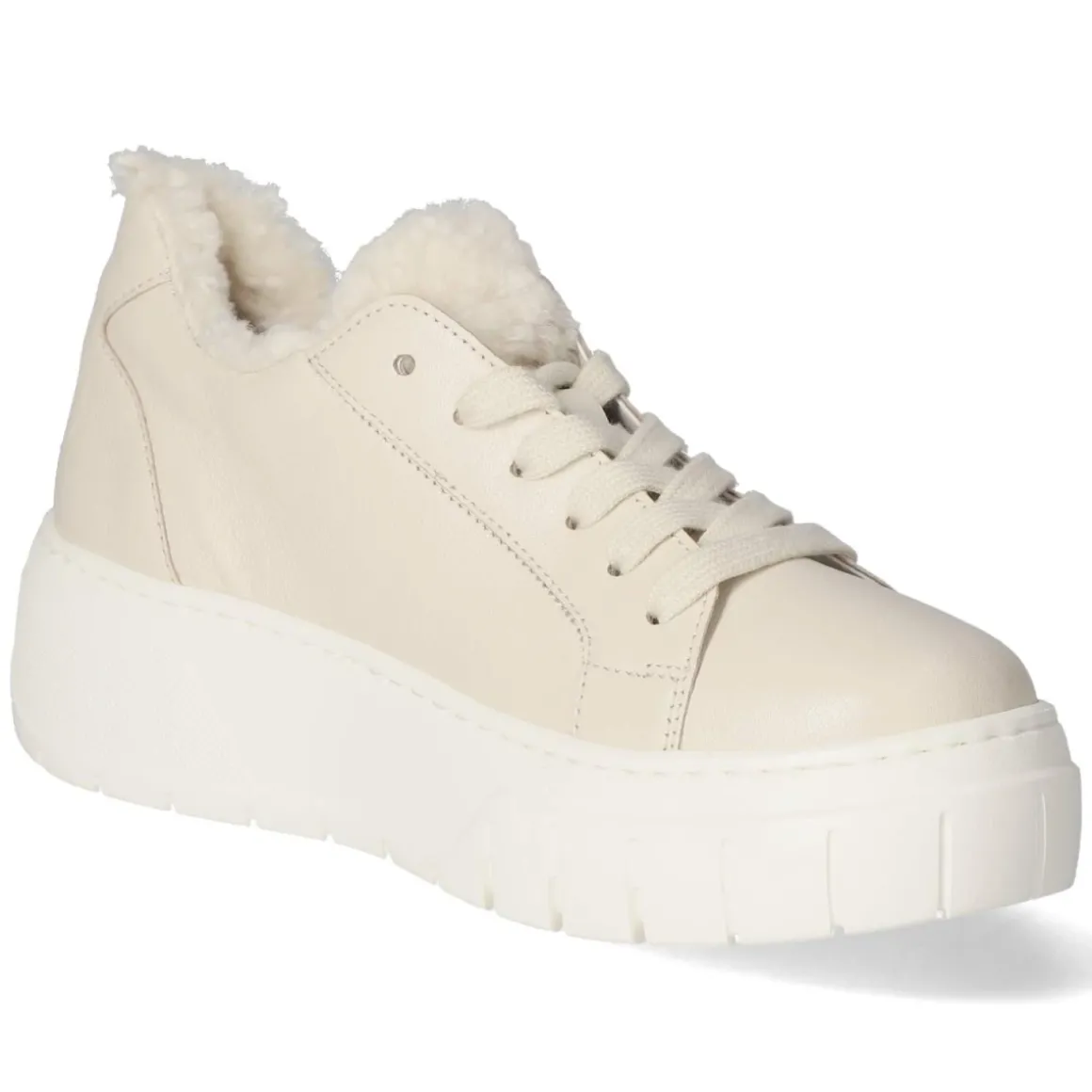 Der Low Sneaker von Gabor in sanftem Beige vereint sportliche Linie mit eleganter Zurückhaltung. Glattes, atmungsaktives Echtleder umschließt den Fuß angenehm, während die runde Spitze und ein 5 cm hohes Plateau für eine moderne Silhouette und komfortable Höhe sorgen. Die flexible, rutschhemmende Laufsohle bietet zuverlässigen Grip im Alltag, der verstärkte Fersenbereich zusätzliche Stabilität. Für individuellen Sitz sorgt die Schnürung, das komfortable Wechselfußbett lässt sich bei Bedarf austauschen. Die lederne Decksohle unterstützt ein wertiges Fußklima, Einstieg und Zunge in Felloptik setzen einen weichen, cozy Akzent. Fällt größengetreu aus und begleitet mühelos vom Büro bis zum Stadtbummel. Modetipp: Ton-in-Ton mit beiger Wollhose und cremefarbenem Strick entsteht ein ruhiger Look, der mit einer goldenen Gliederkette edel abgerundet wird.
