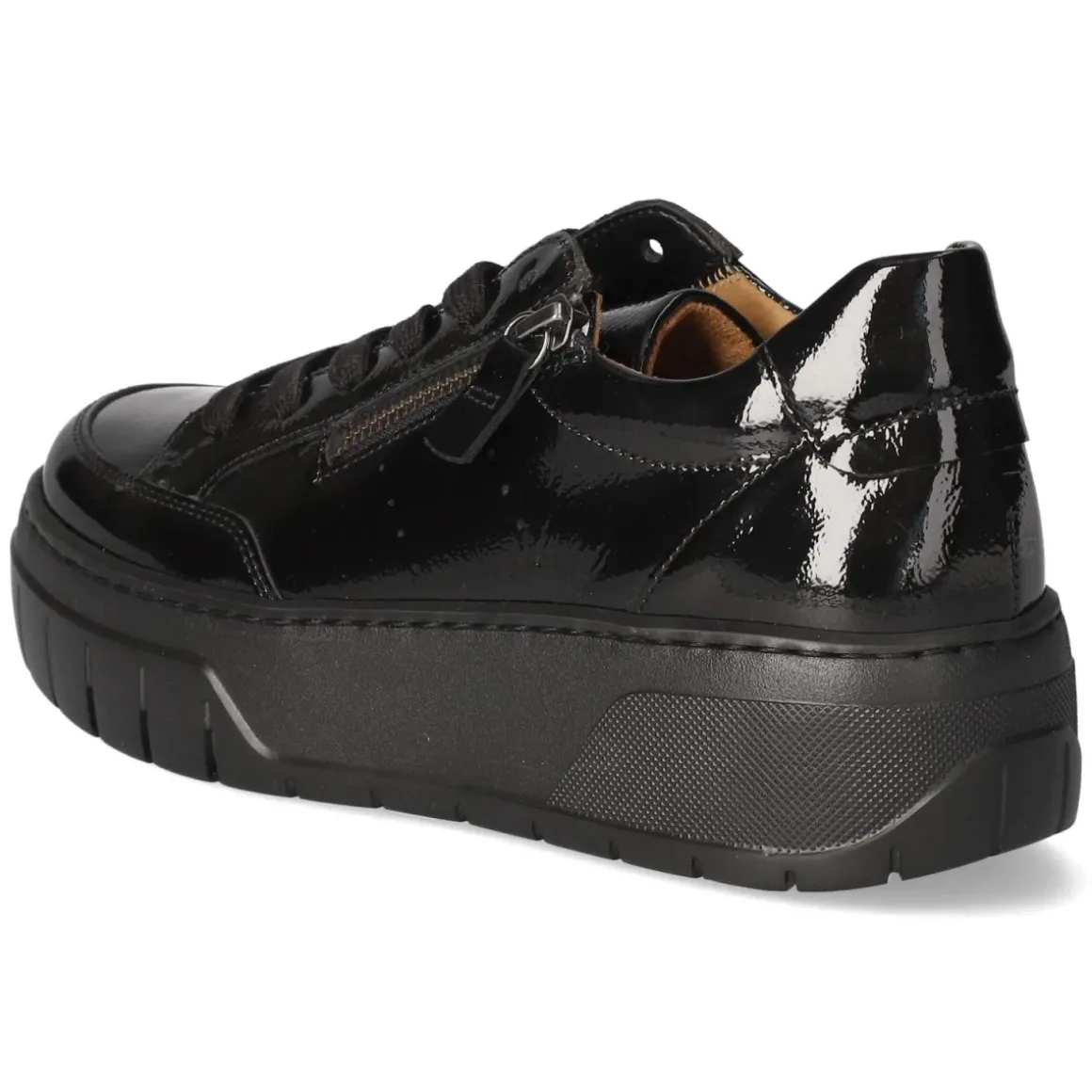 Der Gabor Low Sneaker für Damen verbindet eine elegante Lackoptik in tiefem Schwarz mit alltäglicher Funktionalität. Das Obermaterial aus glänzendem Lackleder verleiht dem minimalistischen Low-Design einen edlen Akzent, während die runde Schuhspitze für eine harmonische Silhouette sorgt. Schnürsenkel garantieren individuelle Anpassung, ein zusätzlicher seitlicher Reißverschluss erleichtert das An- und Ausziehen. Das komfortable Wechselfußbett lässt sich bei Bedarf gegen eigene Einlagen tauschen, die Decksohle aus Textil unterstützt ein angenehmes Fußklima. Verstärkter Zehen- und Fersenbereich geben Stabilität, die rutschhemmende Laufsohle sorgt für sicheren Halt im urbanen Alltag. Der Schuh fällt normal aus und überzeugt als vielseitiger Begleiter vom Office bis zum After-Work. Modetipp: Zu Cropped-Jeans und Oversize-Blazer entsteht ein moderner Kontrast, abends wirkt ein Satinkleid in gedeckten Tönen besonders stimmig.