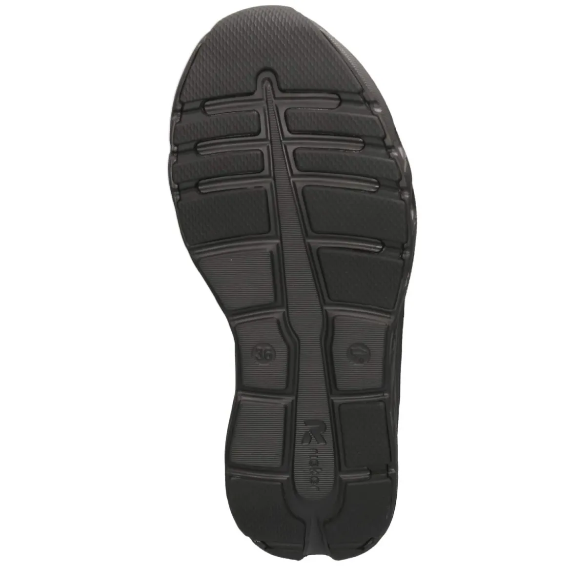 Der Rieker Low Sneaker kombiniert sportliche Leichtigkeit mit einem 5 cm Plateau, das optisch streckt und angenehm auftritt. Das Obermaterial aus Textil und Synthetik wirkt modern, während Mesh-Zonen für atmungsaktive Frische sorgen. Die runde Spitze bietet Bewegungsfreiheit, der gepolsterte Einstieg schont den Knöchel, und das komfortable Wechselfußbett unterstützt bei langen Tagen. Dank klassischer Schnürung lässt sich die Passform präzise anlegen, das größengetreue Modell sitzt zuverlässig. Ein reflektierendes Markenlogo setzt einen subtilen Akzent, verstärkte Zehen- und Fersenbereiche erhöhen die Robustheit. Die rutschfeste Laufsohle liefert Grip auf verschiedenem Untergrund. Modetipp: In Kombination mit einer cropped Straight-Jeans, schwarzer Satinbluse und einem cleanen Trench entsteht ein eleganter City-Look, der mit silbernen Accessoires und einer kompakten Crossbody-Tasche abgerundet wird.