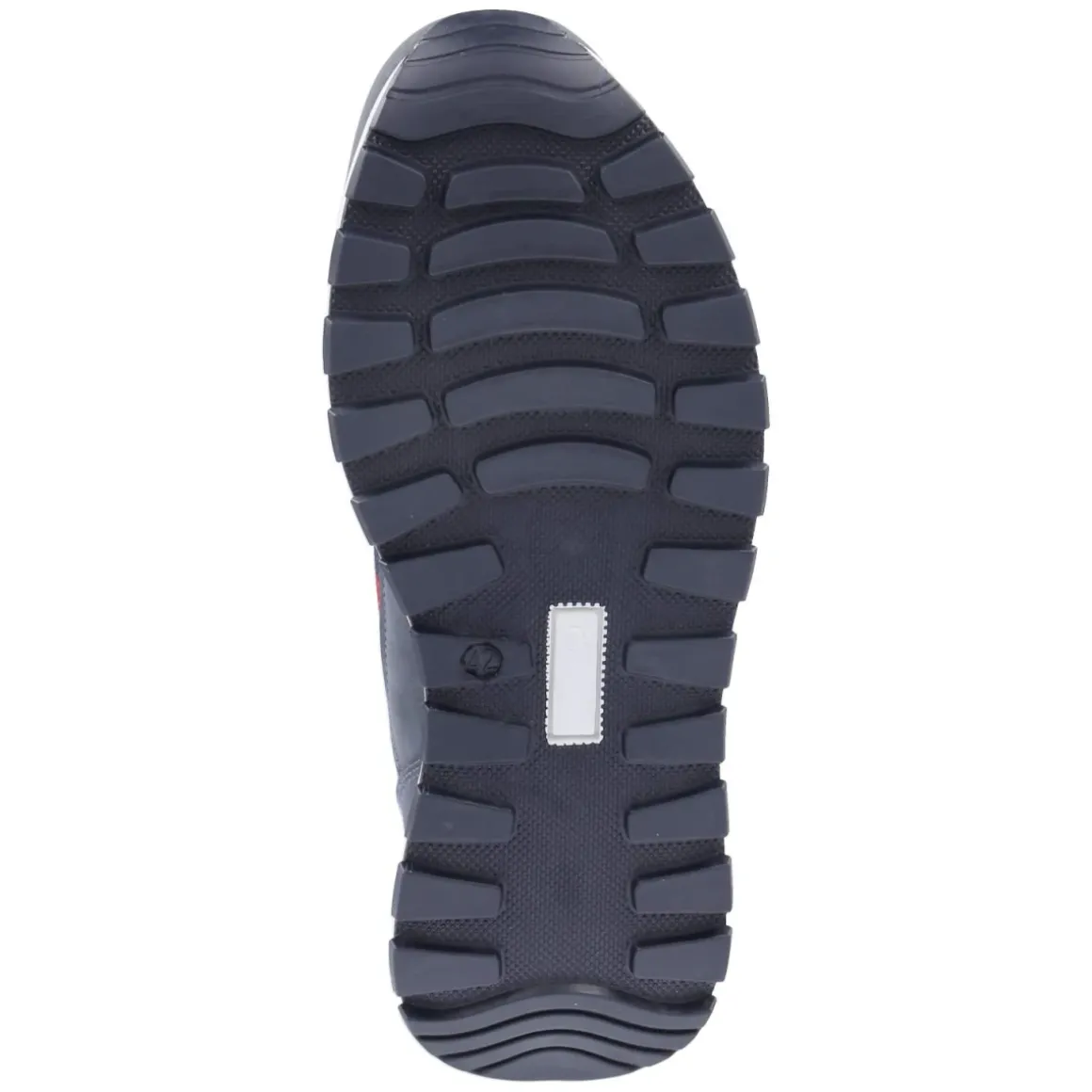 Der Low Sneaker von Tom Tailor bringt sportliche Lässigkeit in die Garderobe erwachsener Herren. Das blaue Modell überzeugt mit pflegeleichter Synthetik-Oberfläche und rund zulaufender Spitze. Feine Perforationen auf Schuhdeck und Seiten sorgen für leichte Belüftung, seitliche Streifen in Markenfarben setzen einen dynamischen Akzent. Für Komfort stehen gepolsterter Einstieg, verstärkter Zehen- und Fersenbereich sowie ein weich gepolstertes, herausnehmbares Wechselfußbett über Textildecksohle. Der klassische Schnürverschluss erlaubt individuellen Halt, die flexible Profilsohle bietet Grip im Alltag. Dank normal ausfallender Größe gelingt die Wahl unkompliziert und macht den Sneaker zum unkomplizierten Begleiter mit vielen Kombinationsmöglichkeiten. Modetipp: besonders stimmig zu heller Chino, gestreiftem Shirt und leichtem Blouson.