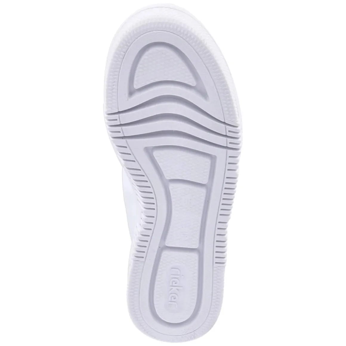 Der Low Sneaker von Rieker setzt auf cleanes Weiß und ein moderates Plateau von 4 cm, das subtil Höhe schenkt und den Look modern abrundet. Das pflegeleichte Synthetik-Obermaterial zeigt dezente Glitzerdetails und einen Zierstreifen mit feiner Reptilprägung, während Branding-Elemente den sportiven Charakter unterstreichen. Eine runde Spitze, verstärkte Zehen- und Fersenpartie sowie ein gepolsterter Einstieg sorgen für Komfort im Alltag. Das relaxt leichte Tragegefühl wird durch eine rutschhemmende Laufsohle und ein weich gepolstertes, hautfreundliches Lederfußbett unterstützt. Mit Schnürsenkeln individuell anpassbar und größengetreu – fällt normal aus. Modetipp: Besonders stilvoll zu Cropped-Jeans und einer weißen Hemdbluse oder als cleaner Kontrast zu einem fließenden Midikleid.