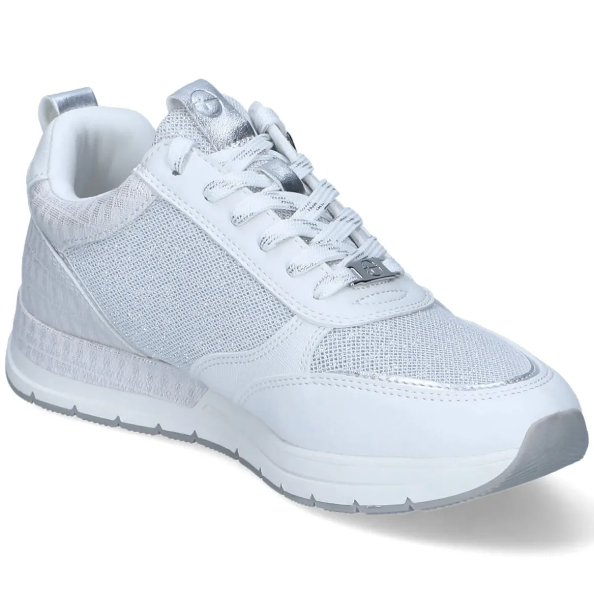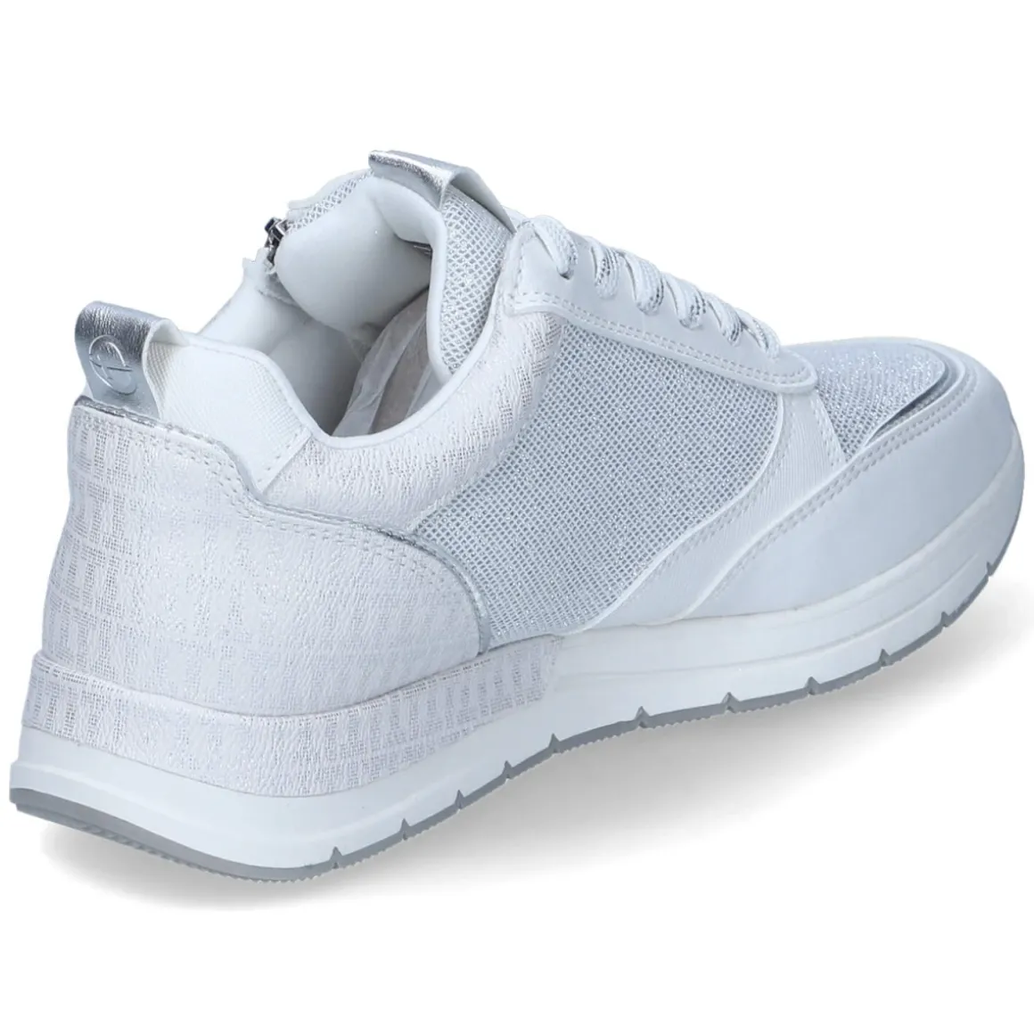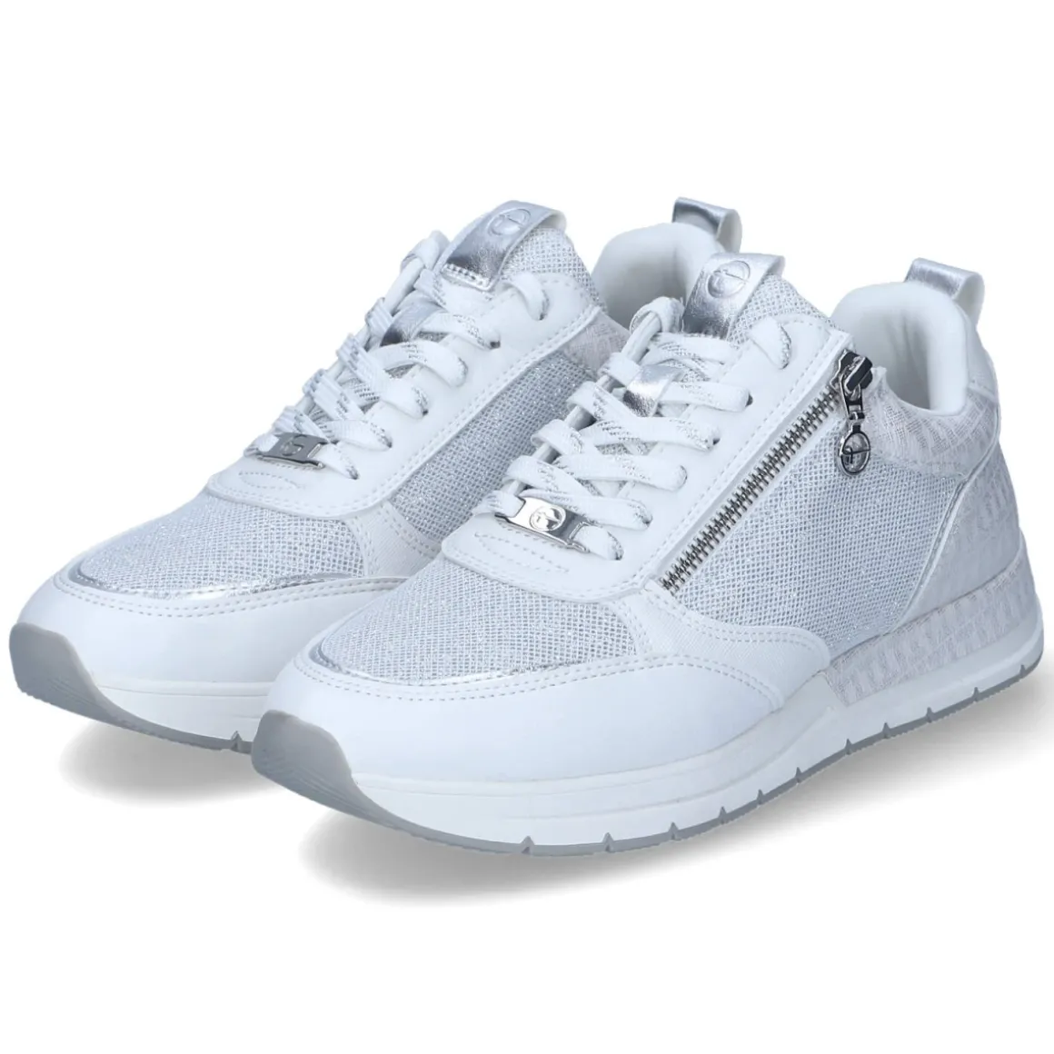 Der Low Sneaker von Tamaris in klarem Weiß verbindet modernen Chic mit hohem Tragekomfort. Vegane Materialien und ein Obermaterial aus Textil & Synthetik liefern eine leichte, pflegeleichte Basis, während glitzernde Highlights dem Design eine feminine Note verleihen. Der bequeme Reißverschluss-Einstieg ergänzt die Schnürung und ermöglicht unkompliziertes Hineinschlüpfen. Die runde Spitze, dezente Markendetails, eine Anziehlasche sowie verstärkte Zehen- und Fersenbereiche erhöhen Alltagstauglichkeit und Halt. Die robuste, profilierte Laufsohle sorgt für zuverlässigen Grip. Innen verwöhnt eine textile Decksohle mit bester Memory-Foam-Fußbettung; das Wechselfußbett lässt sich bei Bedarf austauschen. Der Sneaker fällt normal aus und passt so mühelos in die gängige Größe. Modetipp: Für einen frischen City-Look zu Cropped-Jeans und einem hellen Blazer kombinieren – die glitzernden Akzente setzen subtile Highlights.