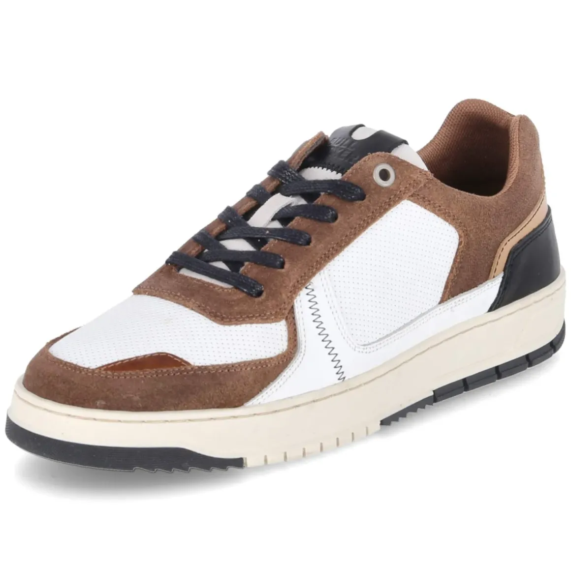 Der Low Sneaker von Bullboxer präsentiert sich in klarem Weiß mit dezenten braunen und schwarzen Akzenten und vereint urbanen Stil mit Komfort. Der stilvolle Ledermix bildet ein hochwertiges Obermaterial, während feine seitliche und vordere Lochungen für angenehmes Fußklima sorgen. Ein gepolsterter Einstieg, die runde Spitze sowie der verstärkte Zehen- und Fersenbereich erhöhen die Bequemlichkeit und Stabilität im Alltag. Die rutschhemmende Cupsohle bietet zuverlässigen Grip, das gepolsterte Wechselfußbett und die textile Decksohle sorgen für weichen Auftritt und individuelle Anpassung. Dank normaler Passform fällt der Schuh größengetreu aus, gelabelte Details runden das Erscheinungsbild ab. Handgefertigte Verarbeitung betont die Wertigkeit. Modetipp: Zu hellen Chinos und einem naturfarbenen Strickpolo kombinieren, dazu ein schwarzer Ledergürtel für einen smarten Kontrast.