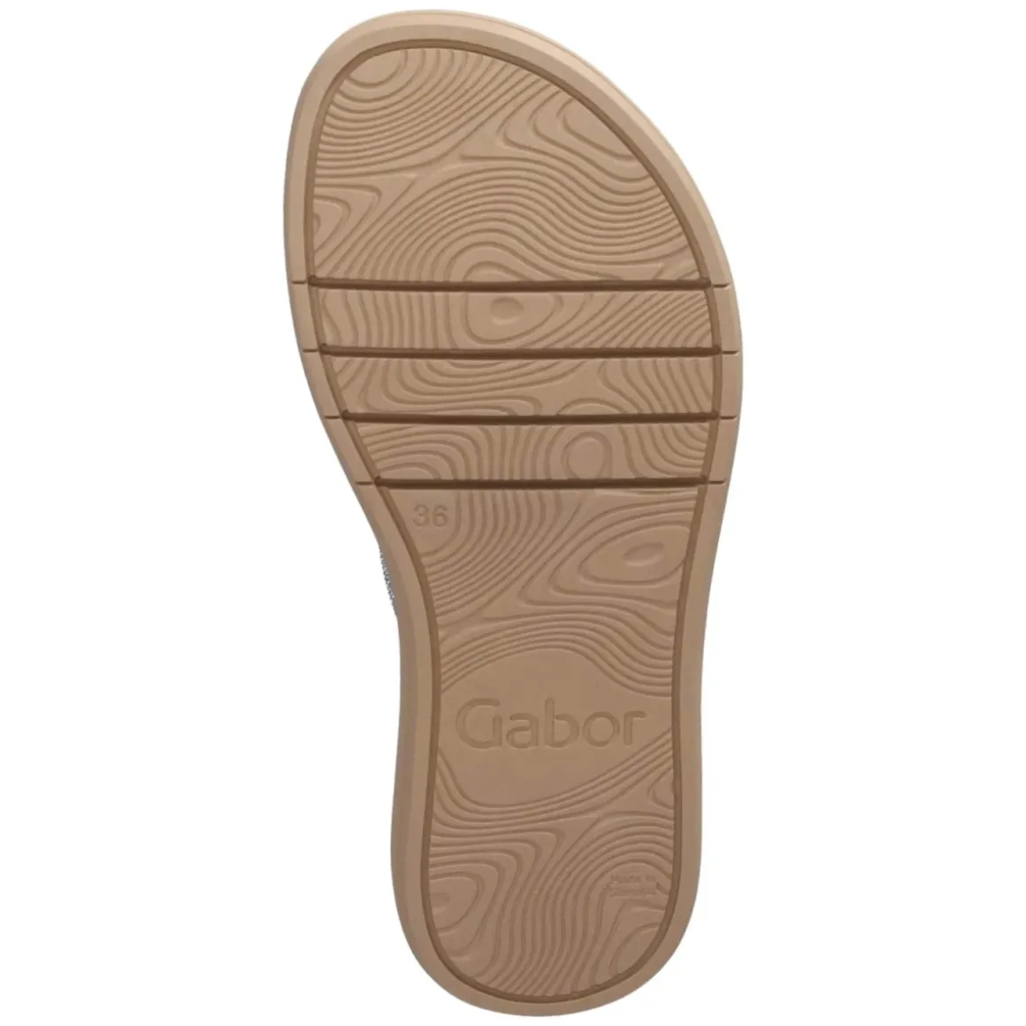 Diese blauen Pantoletten von Gabor verbinden edle Optik mit unkompliziertem Tragekomfort. Das synthetische Obermaterial zeigt eine glitzernde Oberfläche, die von dezent gesetzten Schmucksteinen akzentuiert wird und Sommerlooks ein funkelndes Finish verleiht. Die offene Schuhspitze und der Verzicht auf einen Verschluss sorgen für schnelles Hineinschlüpfen, während die textilbezogene, vorgeformte Decksohle und das vorgeformte, gepolsterte Fußbett den Fuß angenehm unterstützen. Eine flexible, rutschhemmende Laufsohle bietet sicheren Halt auf glatten Böden. Die Passform fällt normal aus und eignet sich für den täglichen Einsatz in Stadt und Urlaub. Modetipp: Zu fließenden Midi-Kleidern oder hellen Culottes und einer Perlen- oder Silbertasche entsteht ein eleganter, sommerlicher Auftritt.