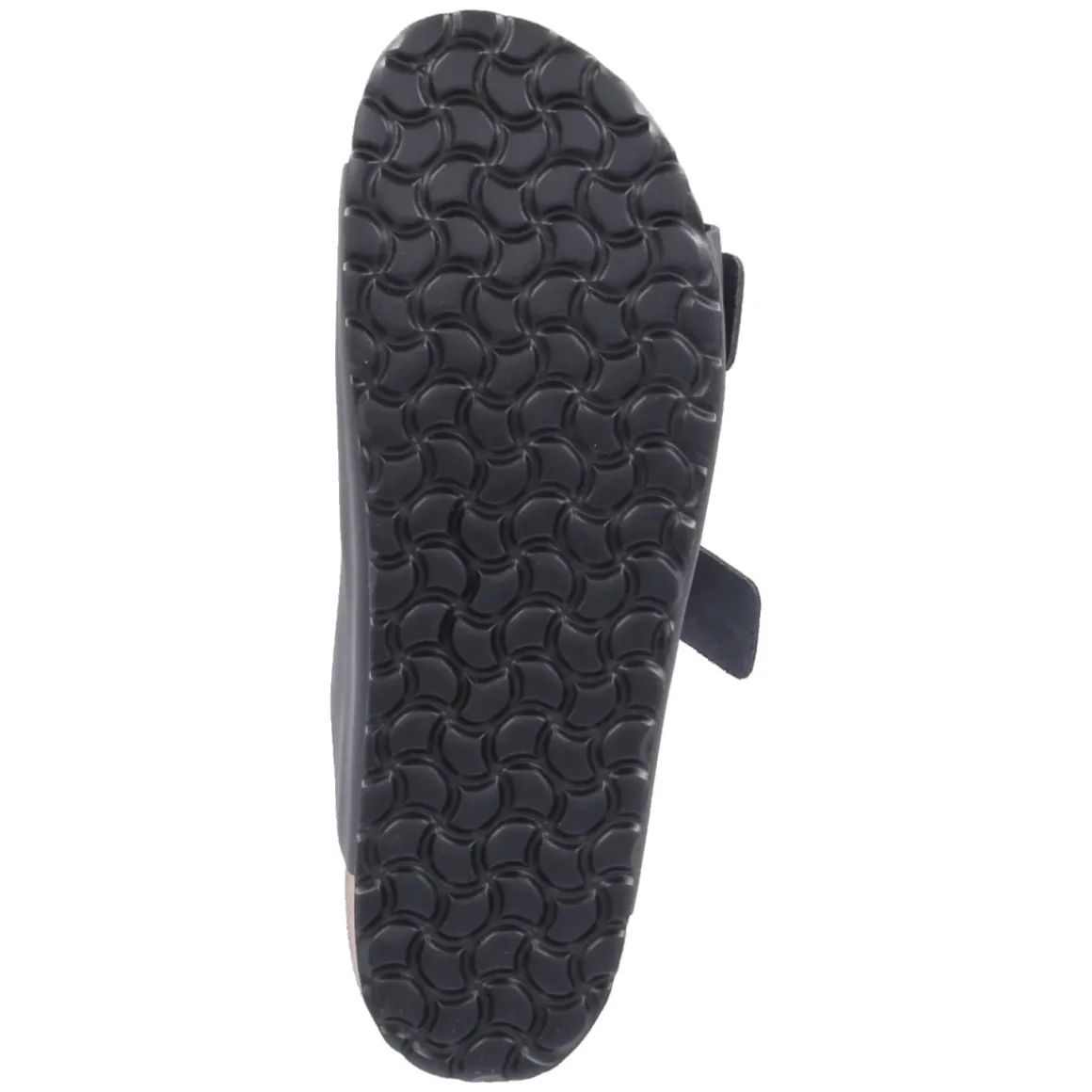 Die Pantoletten von Empor verbinden lässige Optik mit funktionaler Ausstattung. Glattes, robustes Echtleder prägt den cleanen Look in Blau und sorgt für Langlebigkeit. Zwei verstellbare Schnallen ermöglichen eine passgenaue Weitenregulierung, während die offene Schuhspitze für ein angenehm luftiges Tragegefühl steht. Das vorgeformte Kork-Tieffußbett mit Lederbezug und das weich gepolsterte Fußbett unterstützen komfortables Gehen im Alltag. Eine profilierte EVA-Laufsohle bietet zuverlässigen Halt auf verschiedenen Untergründen. Der Schnitt fällt normal aus und macht die Größenauswahl unkompliziert. Ob Freizeit, City oder Urlaub, diese Pantoletten setzen auf Komfort ohne Kompromisse. Modetipp: Mit heller Leinenhose und lockerer Oxford-Bluse in Weiß oder Navy entsteht ein zeitlos-frischer Sommerlook.