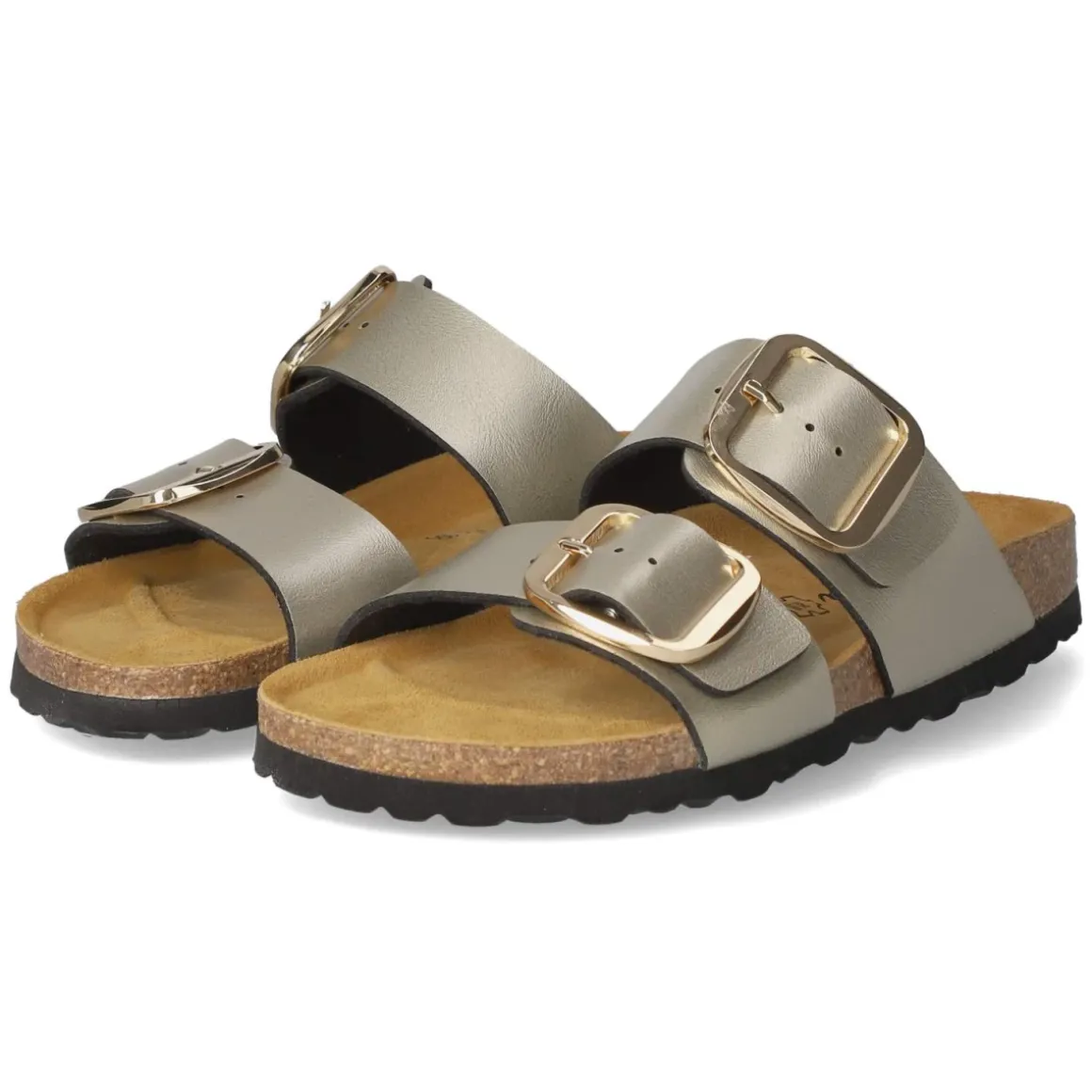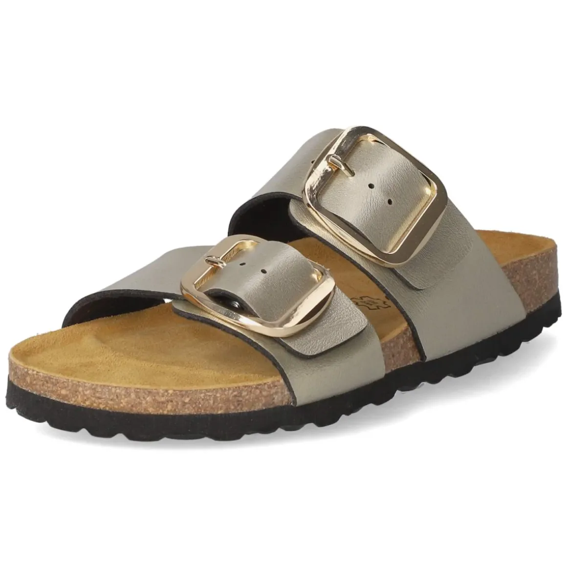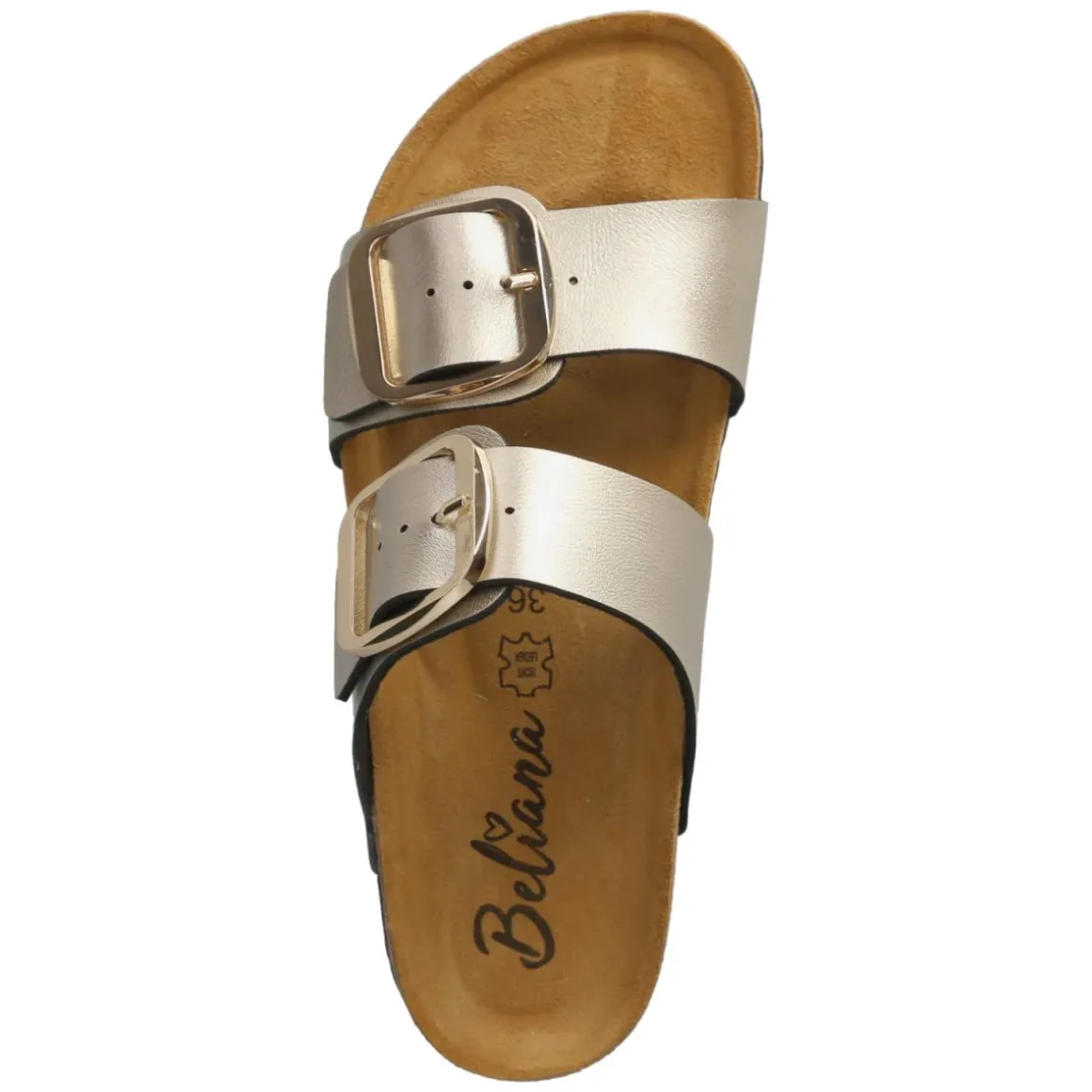 Die Pantoletten von Beliana vereinen glamourösen Look und durchdachten Komfort. Das goldfarben schimmernde Obermaterial aus Kunstleder bringt einen eleganten Akzent in sommerliche Outfits, während die offene Schuhspitze für luftiges Tragegefühl sorgt. Die vorgeformte Decksohle geht in ein gepolstertes Lederfußbett über, das die Fußkontur sanft unterstützt und entspanntes Gehen über den Tag ermöglicht. Verstellbare, sichere Schnallen sorgen für passgenauen Halt, die flexible Laufsohle federt Schritte angenehm ab. Der Größenhinweis fällt normal aus, wodurch die gewohnte Größe die richtige Wahl ist. Diese Damen-Pantoletten sind ideal für Freizeit und Anlass, wenn dezenter Glanz gefragt ist. Modetipp: Zur Culotte in Naturtönen und einer feinen Satinbluse entsteht ein moderner City-Look, der mit goldenen Accessoires harmonisch abgerundet wird.