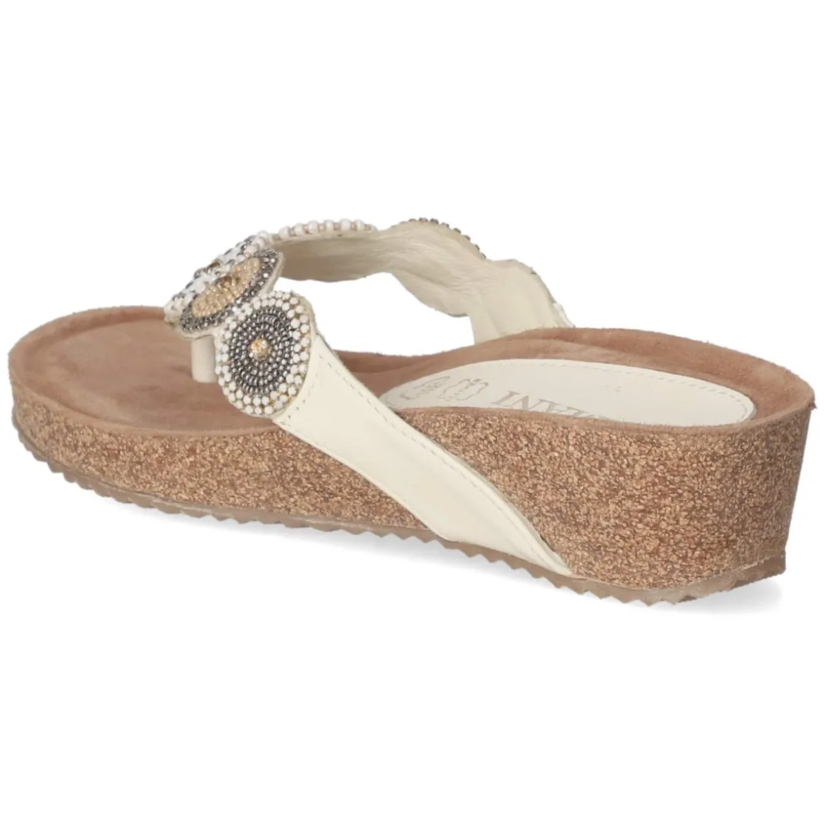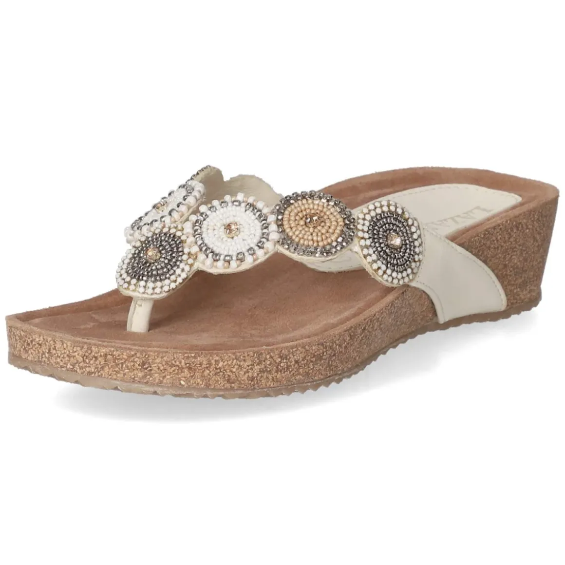Sommerlicher Auftritt mit den Pantoletten von LAZAMANI: Das weiße Glattleder sorgt für einen frischen Look, während die offene Spitze und der legere Schnitt den Charakter angenehm entspannt halten. Auf der Decksohle aus Leder liegt ein weich gepolstertes Fußbett, das den Fuß sanft abfedert. Sieben kreisförmige Ornamente mit funkelnden Schmucksteinen setzen ein elegantes Highlight und verleihen dem robusten Material-Mix eine feminine Note. Dank flexibler, griffiger Laufsohle und dem praktischen Schlupfeinstieg ohne Verschluss bleibt der Gehkomfort hoch. Das Modell fällt normal aus und lässt sich mühelos in den Alltag integrieren, von Cityspaziergang bis Terrassenabend. Modetipp: Zu naturfarbenen Leinen-Culottes und einem cleanen Tanktop kombinieren, dazu eine Basttasche und filigraner Goldschmuck für einen lässig-edlen Look.