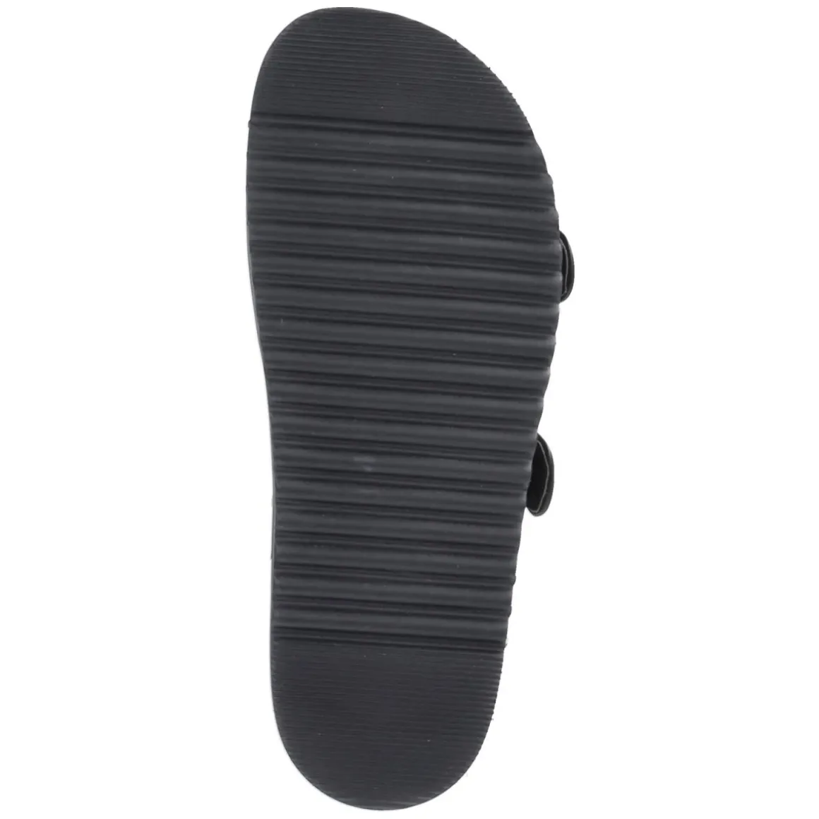 Die Pantoletten REILLY PENNY von Mexx verbinden klaren Minimalismus mit feiner Struktur. Das geflochtene Obermaterial in Streifenoptik setzt einen dezenten Akzent, während zwei kupferfarbene Schnallen den Look veredeln und zugleich individuell an den Fuß anpassen. Die Passform fällt normal aus und das vorgeformte, dämpfende Tieffußbett sorgt bei langen Tagen in der Stadt ebenso wie beim Wochenendtrip für spürbaren Komfort. Eine flexible, griffige Laufsohle bietet zuverlässigen Halt, die pflegeleichte Synthetik-Oberfläche und die synthetische Decksohle überzeugen im Alltag. In klassischem Schwarz werden vielseitige Kombinationsmöglichkeiten eröffnet – von luftigen Kleidern bis zu Denim. Modetipp: Zur monochromen Black-on-Black-Kombi mit feinem Kupferschmuck und einem gestreiften Top stylen, das die Struktur des Riemens spielerisch aufgreift.
