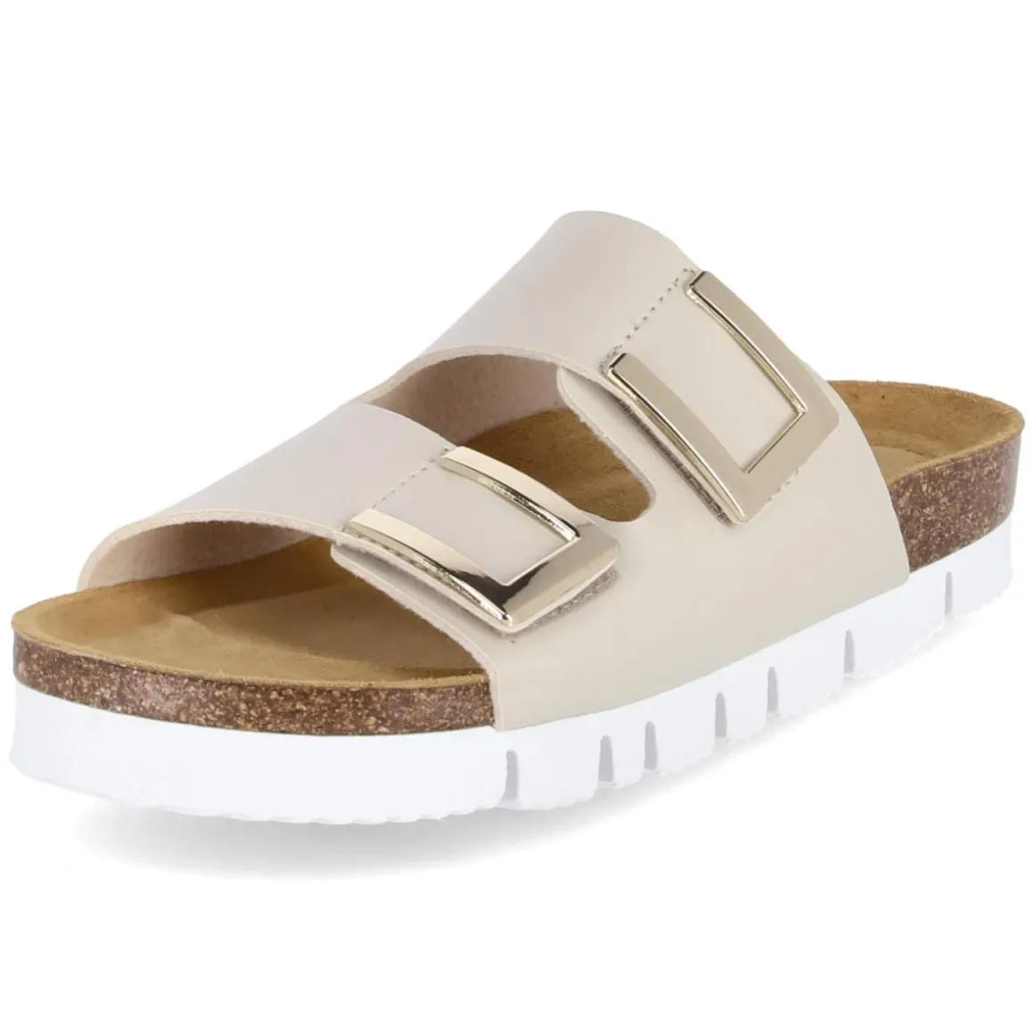 Die Pantoletten von Beliana vereinen sommerliche Leichtigkeit mit komfortorientiertem Design. Das relaxtes Leichtgewicht mit 3 cm hohem Plateau sorgt für einen sanften Höhengewinn und entlastet zugleich bei jedem Schritt. Ein gepolstertes Fußbett und die Decksohle aus Leder bieten angenehmen Tragekomfort, während der verstellbare Klettverschluss Halt und eine schnelle Anpassung ermöglicht. Das pflegeleichte Kunstleder in zeitlosem Beige wirkt zurückhaltend elegant und lässt sich vielseitig kombinieren. Zierelemente in Goldoptik setzen dabei einen edlen Akzent, der den offenen Schnitt stilvoll abrundet. Der Größenhinweis fällt normal aus, was die Wahl unkompliziert macht. Modetipp: Zu luftigen Leinen-Culottes und einer seidigen Bluse kommt der beige Ton besonders schön zur Geltung; goldfarbener Schmuck und eine geflochtene Schultertasche greifen die Metall-Details stimmig auf.
