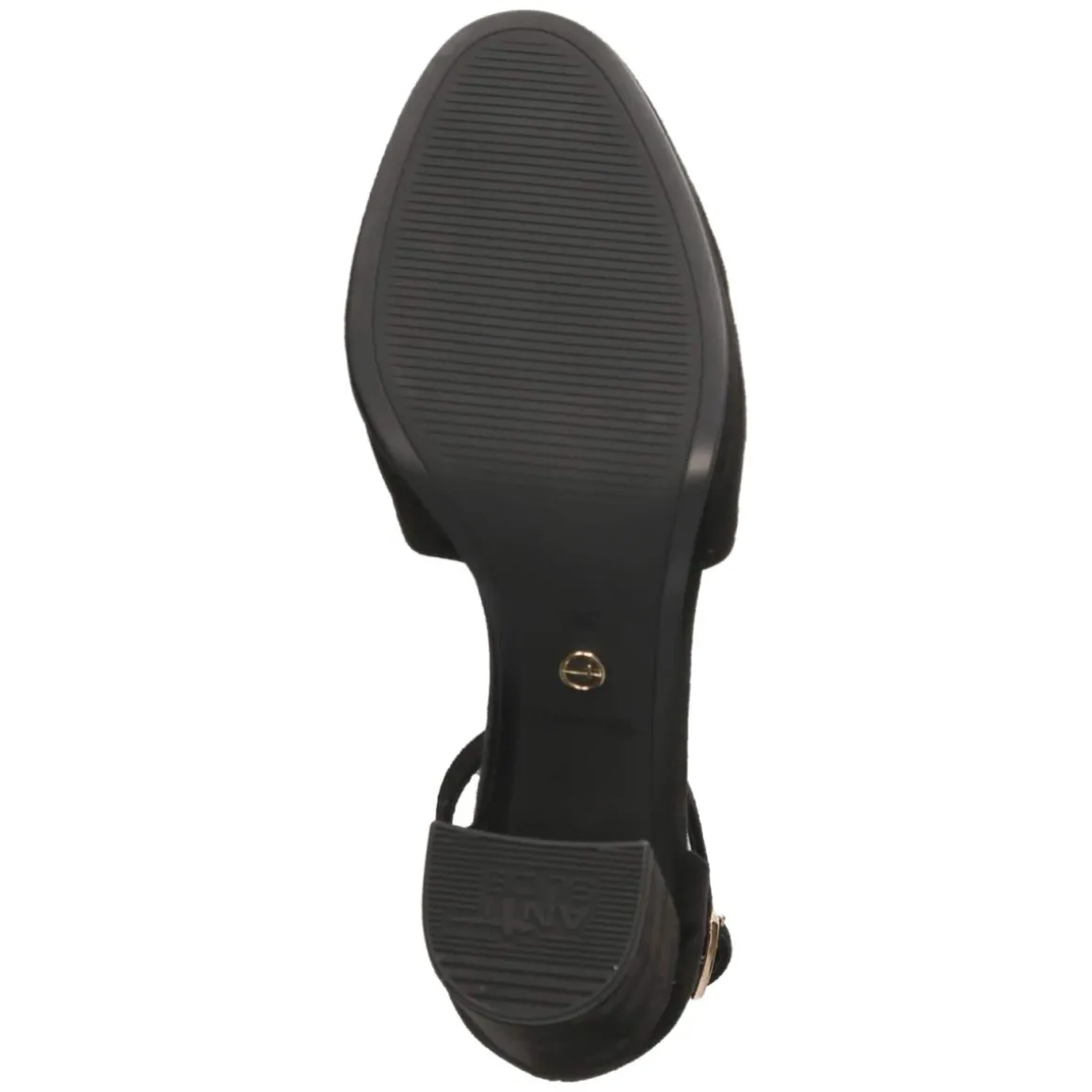Der Tamaris Pumps in klassischem Schwarz verleiht jedem Look eine elegante Note. Sein 8 cm hoher Blockabsatz sorgt für souveräne Höhe und dank der stabilen Form für angenehmen Stand. Das Obermaterial aus hochwertigem Synthetik zeigt eine samtige Oberfläche, die von dezenten, goldenen Akzenten edel gerahmt wird. Die runde Schuhspitze wirkt zeitlos feminin, während die verstellbare Schnalle mit integriertem Elastikeinsatz sicheren Halt und ein komfortables Einsteigen ermöglicht. Eine weich gepolsterte Decksohle aus Textil und die rutschfeste Laufsohle unterstützen Komfort und Trittsicherheit im Alltag und am Abend. Das Modell fällt normal aus und ist vollständig aus veganen Materialien gefertigt – stilbewusste Wahl ohne Kompromisse. Modetipp: Zu einem fließenden Midikleid oder einem Tailoring-Ensemble in Creme entfaltet der Pumps seine klassische Stärke; filigraner Goldschmuck greift die Metall-Details harmonisch auf.