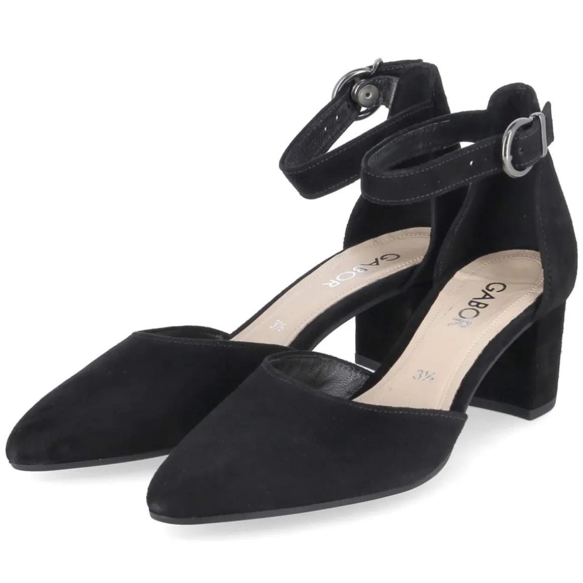 Eleganz trifft Komfort: Der Riemchenpumps von Gabor zeigt sich in klassischem Schwarz mit samtiger Oberfläche aus hochwertigem Rauleder. Die runde Schuhspitze und der 6 cm hohe Blockabsatz sorgen für eine feminine Silhouette und sicheren Stand. Dank Schnalle mit Druckknopf gelingt das An- und Ausziehen im Handumdrehen, während die flexible Laufsohle und die Lederdecksohle ein angenehmes Tragegefühl bieten. Das Modell fällt normal aus und überzeugt mit einer eleganten Optik, die Business- und Event-Looks mühelos abrundet. Ein zartes Knöchelriemchen (Ankle Strap) setzt den Fuß stilvoll in Szene und verleiht Halt. Modetipp: Zu einem schmalen Etuikleid und einer dezenten Clutch entsteht ein zeitloser Auftritt, für den Alltag harmoniert der Pumps mit Cropped-Jeans und feiner Strickjacke.