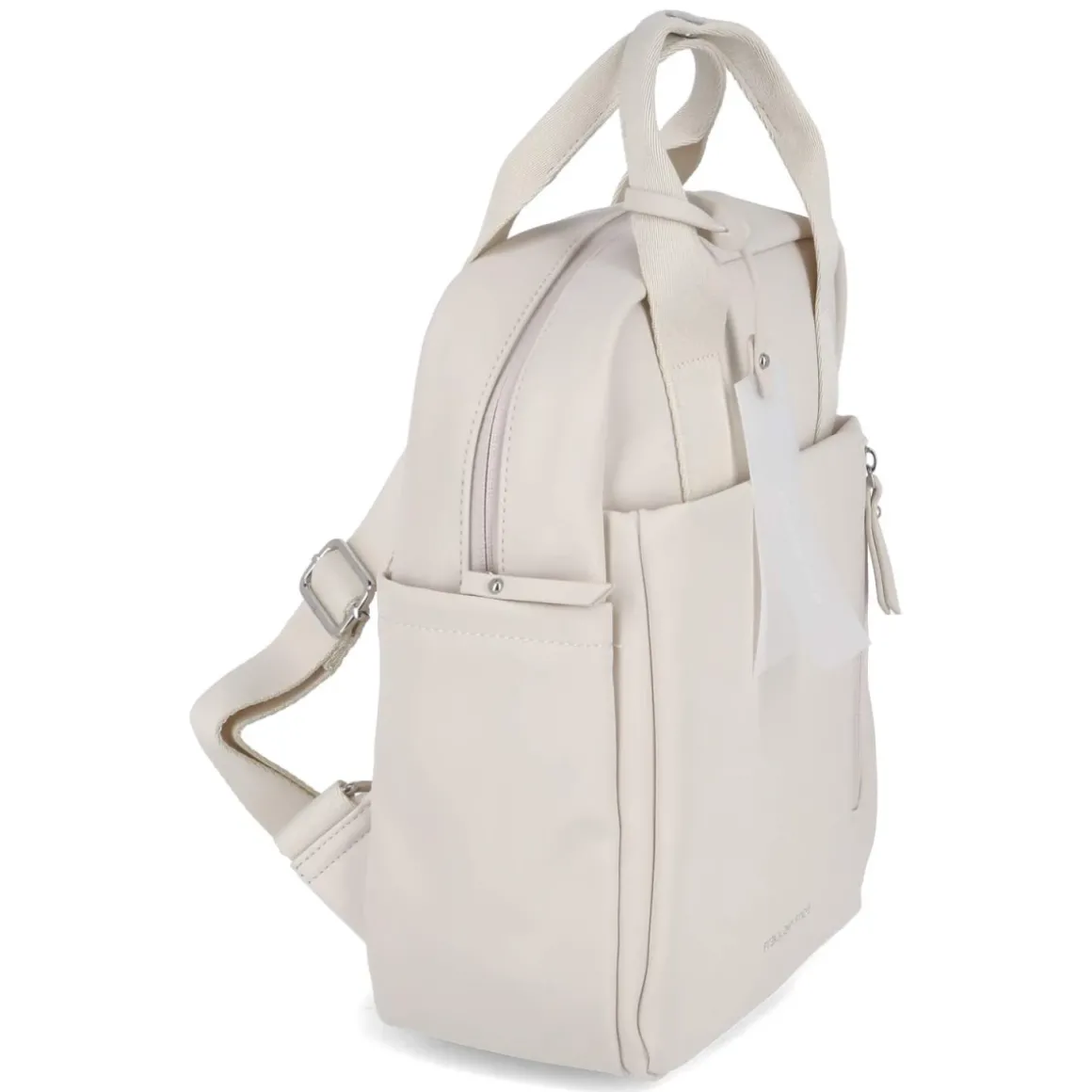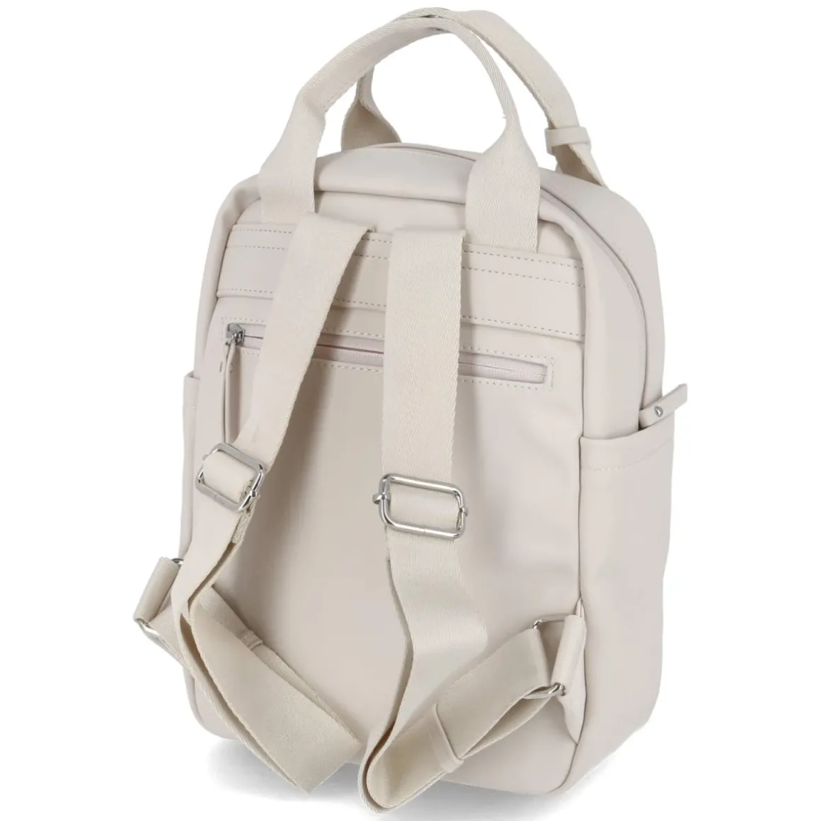 Zeitloser Damenrucksack in edlem Beige, kompakt mit ca. 31 x 23 x 13 cm und einem Volumen von ca. 9 Litern. Das Hauptfach schließt sicher mit Reißverschluss, während eine Fronttasche mit Magnet schnellen Zugriff auf Kleinigkeiten ermöglicht. Vorne und hinten ergänzen Reißverschlussfächer die Organisation, innen warten ein Steckfach, ein weiteres Reißverschlussfach sowie ein gepolstertes Rückenfach in Laptopgröße auf Technik und Wertsachen. Der verstärkte Boden hält die Form, verstellbare Tragegurte bis ca. 85 cm sorgen für komfortablen Sitz. Zwei kleine Seitentaschen bieten Platz für Flasche oder Schirm. Ein smarter Begleiter für Büro, Stadt und Reise. Modetipp: Zu Trenchcoat, Cropped-Jeans und weißen Sneakern entsteht ein moderner, reduzierter Look.