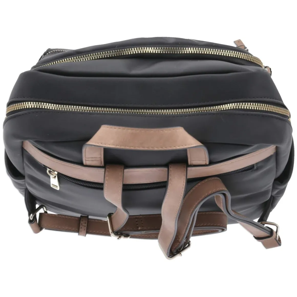 Zeitloser Chic trifft Funktion: Der schwarze Damenrucksack setzt mit Metallelementen in goldener Optik edle Akzente und überzeugt mit klarer Silhouette. Mit ca. 37 x 28 x 13 cm und rund 7 Litern Fassungsvermögen bietet er genügend Platz für Tagesessentials, bleibt dabei jedoch kompakt. Verstellbare Tragegurte bis ca. 90 cm und ein stabiler Henkel sorgen für vielseitige Trageoptionen, der verstärkte Boden für Form und Standfestigkeit. Durchdachte Organisation: zwei Fronttaschen für Schnelles, ein diskretes Rückenfach sowie ein Reißverschlusshauptfach mit gepolstertem Fach in Laptopgröße und zusätzlichem Reißverschlussfach. Ideal für Commute, City und Café. Modetipp: Der elegante Schwarzton harmoniert hervorragend mit monochromen Looks; in Kombination mit Feinstrick, weiter Stoffhose und Loafern entsteht ein moderner, urbaner Auftritt.