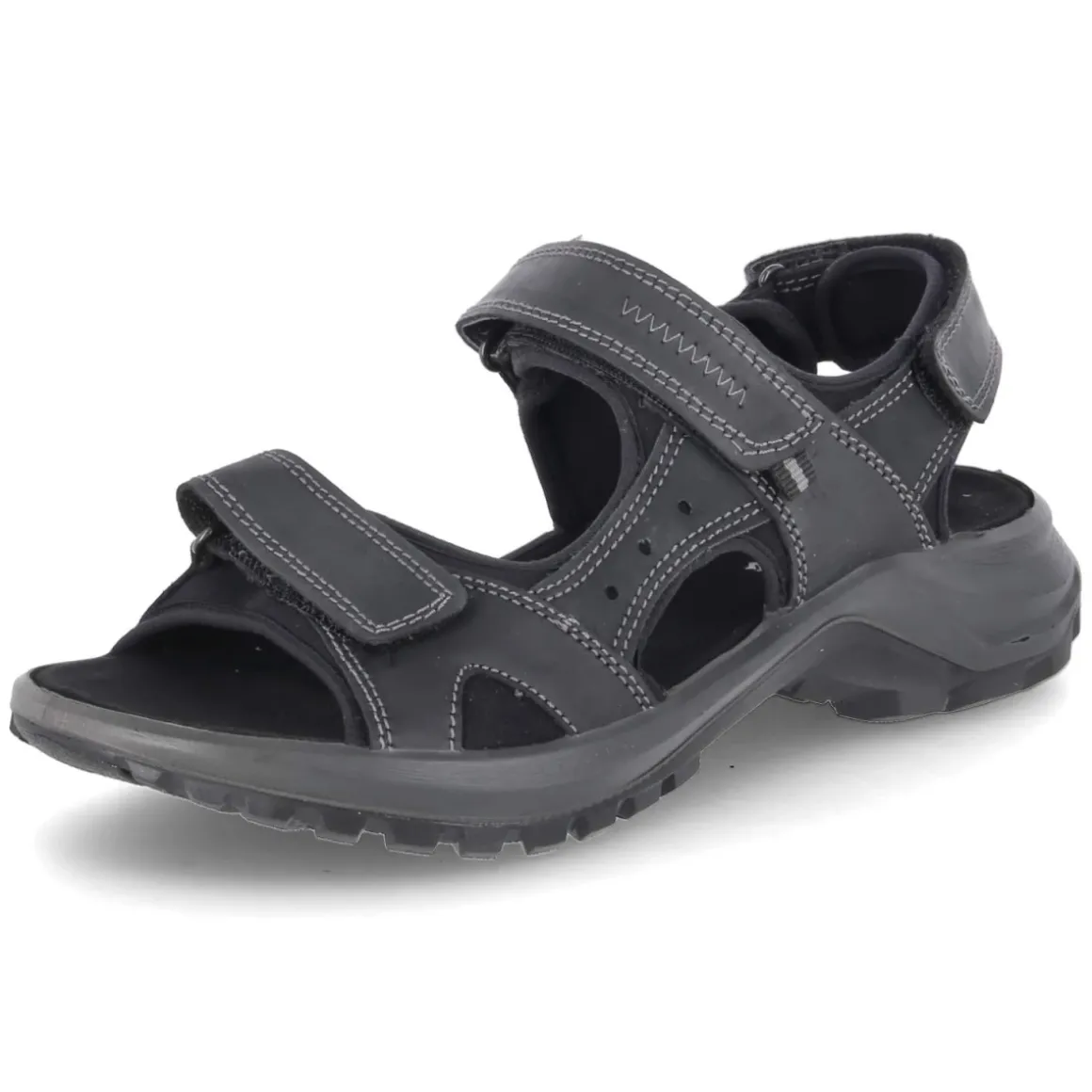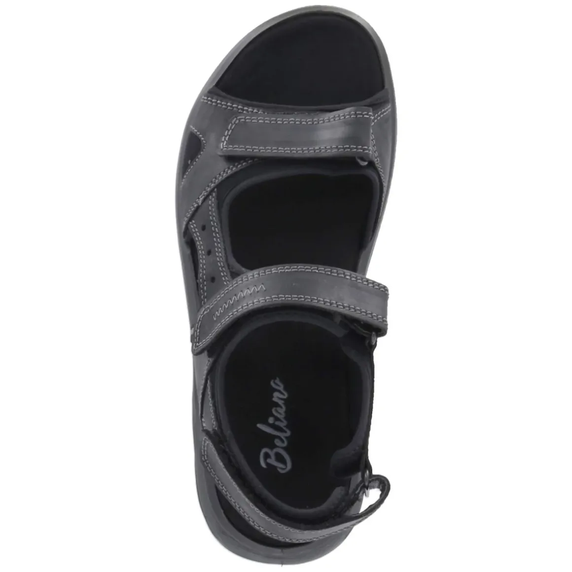 Beliano Sandalen aus schwarzem Glattleder vereinen robuste Langlebigkeit mit sommerlicher Leichtigkeit. Das langlebige Echtleder und die offene Schuhspitze sorgen für angenehmes Klima, während die lederne Decksohle zusammen mit dem gepolsterten Fußbett sanften Auftritt und dauerhaften Komfort bietet. Drei praktische Klettverschlüsse erlauben eine millimetergenaue Anpassung über Spann, Rist und Ferse; so sitzt der Schuh zuverlässig, fällt zugleich normal aus und bleibt schnell an- und auszuziehen. Ein angenehmes Textilfutter mit neoprenähnlicher Haptik schmiegt sich weich an und verhindert Druckstellen. Ziernähte setzen dezente Akzente, die flexible Profilsohle gibt Halt auf Stadtpflaster und Promenade. Ideal für Erwachsene, die Wert auf unkomplizierte Funktion legen. Modetipp: Zu schwarzen Beliano Sandalen harmonieren Leinen-Shorts und ein helles Polo, alternativ eine gekrempelte Chino und ein luftiges Hemd.
