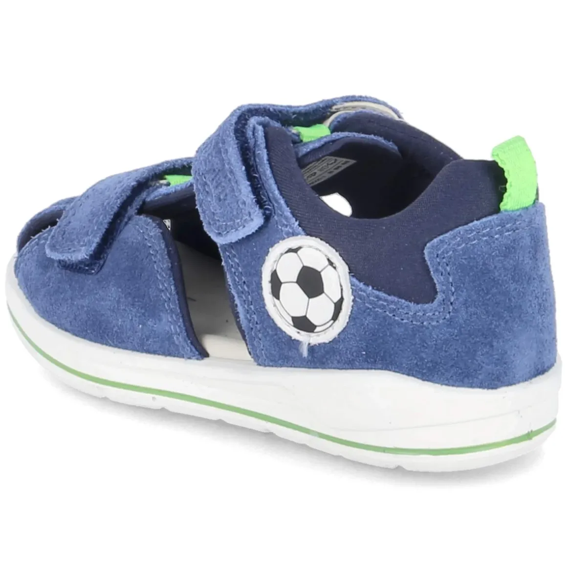 Diese blauen Superfit Sandalen bringen Spielplatz-taugliche Robustheit und weichen Tragekomfort zusammen – ideal für Kleinkinderfüße in Bewegung. Der Material-Mix aus Leder und Textil hält stand, während die hautfreundliche Lederdecksohle für ein angenehmes Fußklima sorgt. Zwei praktische Klettriemen bieten schnellen Halt und lassen sich passgenau regulieren; die WMS-Schuhweite Mittel unterstützt eine kindgerechte Passform. Ein gepolsterter Einstieg und der verstärkte Fersenbereich geben zusätzliche Stabilität, die runde Schuhspitze lässt genügend Zehenfreiheit. Die flexible, rutschhemmende Laufsohle begleitet sichere Schritte auf glatten Fliesen wie auf dem Spielplatz. Ein seitliches Fußballmotiv setzt einen sportlichen Akzent. Fällt normal aus. Modetipp: mit leichten Jeansshorts und einem Ringelshirt kombinieren – dazu farblich abgestimmte Socken für kühle Tage.