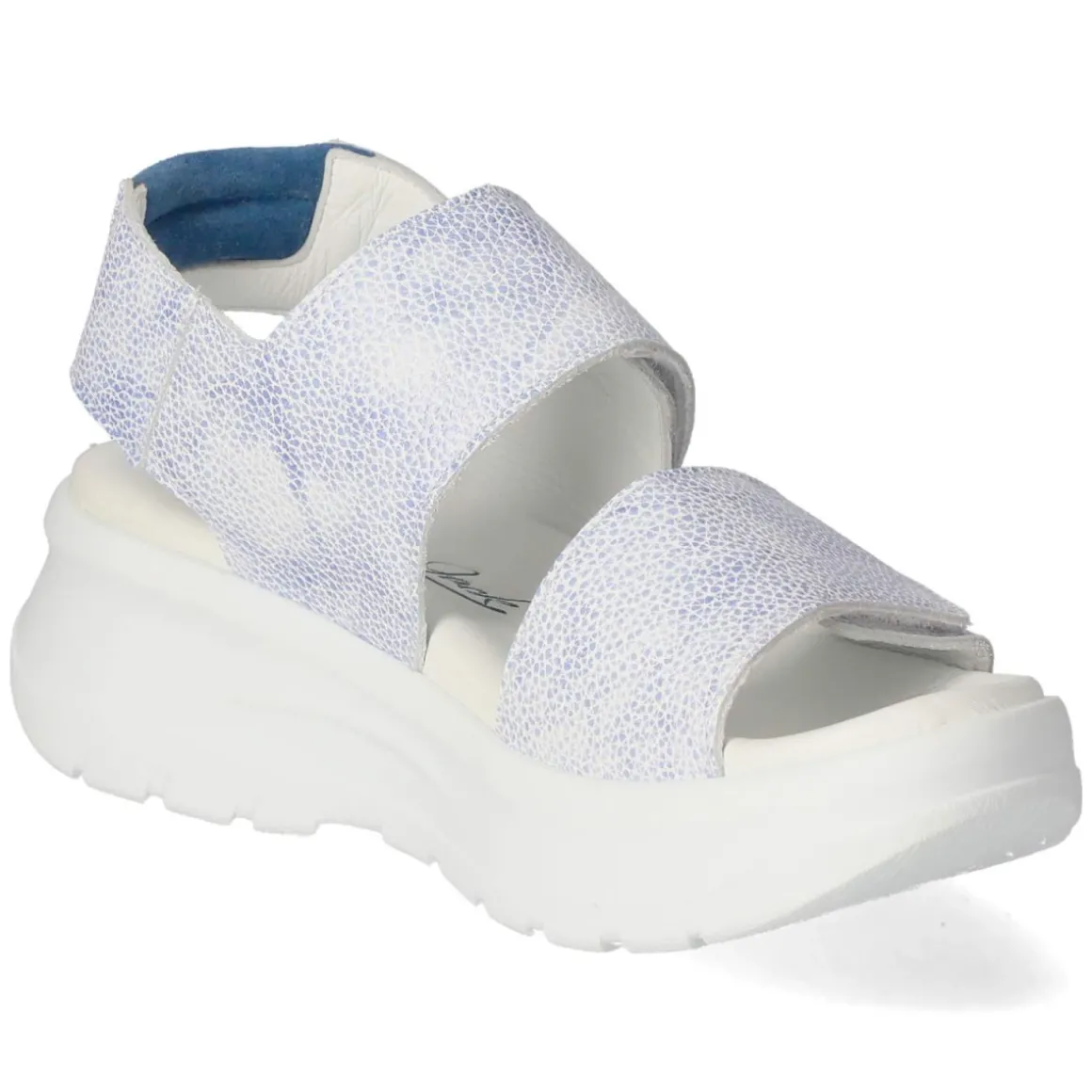 Panama Jack präsentiert mit dem Modell Sandalen NOAH eine blaue Sommerheldin aus robustem Glattleder. Die gesprenkelte Oberfläche setzt einen modernen Akzent, während zwei leicht bedienbare Klettverschlüsse das An- und Ausziehen unkompliziert machen und sicheren Halt geben. Eine hautfreundliche Lederdecksohle und das weich gepolsterte Lederfußbett sorgen den ganzen Tag über für Komfort, die gepolsterte Ferse schont empfindliche Partien. Mit runder Schuhspitze und 6 cm hohem Plateauabsatz verleiht die rutschhemmende Plateausohle angenehme Höhe und Stabilität, ohne auf Bequemlichkeit zu verzichten. Das Modell fällt normal aus und begleitet zuverlässig durch Stadtspaziergänge, Büroalltag und Urlaubstage. Modetipp: Zur luftigen Leinenbluse und verkürzten Jeans oder zum Midikleid in Naturtönen stylen, dazu eine Korbtasche für lässige Sommer-Eleganz.