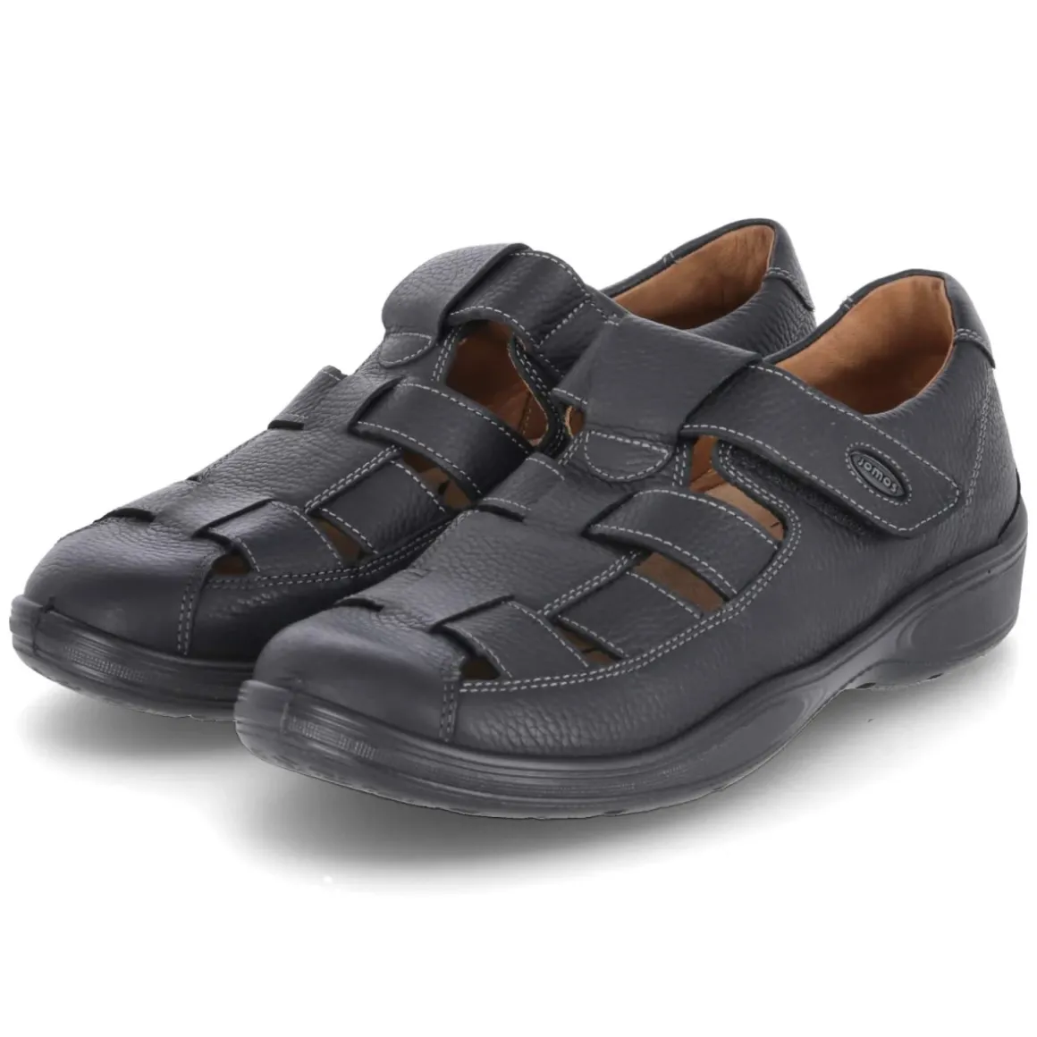 Diese Herren-Sandale von Jomos verbindet den Schutz geschlossener Zehen- und Fersenpartien mit der Luftigkeit sommerlicher Schuhmode. Glattes, robustes Echtleder in tiefem Schwarz und die runde Spitze sorgen für einen zeitlosen Look, der im Alltag ebenso überzeugt wie auf kleinen Touren. Ein komfortables Wechselfußbett mit leicht vorgeformter, weicher Lederdecksohle entlastet den Fuß und lässt sich bei Bedarf einfach herausnehmen. Der gepolsterte Einstieg schont den Rist, während Klettverschlüsse eine schnelle Anpassung an unterschiedliche Fußformen ermöglichen. Die flexible, rutschhemmende Laufsohle bietet verlässlichen Halt, das Modell fällt normal aus und trägt sich in gewohnter Größe. Ideal für lange Tage auf den Beinen, wenn Stabilität, Komfort und Pflegeleichtigkeit gefragt sind. Modetipp: Zu Chino oder Leinenhose und einem schlichten Poloshirt entsteht ein ruhiger, gepflegter Sommer-Look.