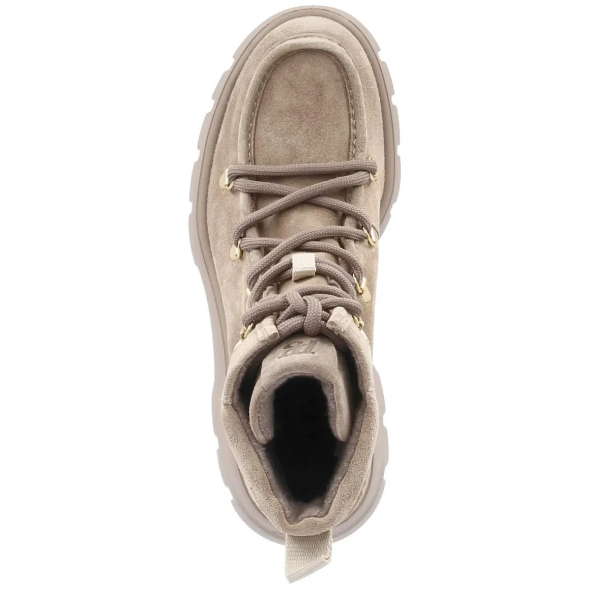 Die beige Schnürboots von Paul Green vereinen einen natürlichen Look mit urbaner Robustheit. Weiches Rauleder mit markanter Wulstnaht auf dem Schuhdeck und goldene Schnürösen setzen hochwertige Akzente, während die runde Spitze und der Schnürsenkelverschluss zeitlose Lässigkeit ausstrahlen. Die starke, zugleich leichte und flexibel griffige Laufsohle sorgt gemeinsam mit dem stabilen 5‑cm‑Blockabsatz für Trittsicherheit und eine harmonische Silhouette. Innen verwöhnen gepolsterter Einstieg, verstärkter Fersenbereich sowie ein Thermofußbett und das leicht wärmende Futter aus Merinowolle. Eine Textil‑Decksohle unterstützt atmungsaktiven Komfort. Dank Anziehlasche gelingt der Einstieg spielend leicht; der Größenhinweis fällt normal aus. Modetipp: Zu geradem Denim, Feinstrickpullover und Oversize‑Wollmantel entsteht ein moderner City‑Look, der die beige Farbigkeit elegant aufgreift.