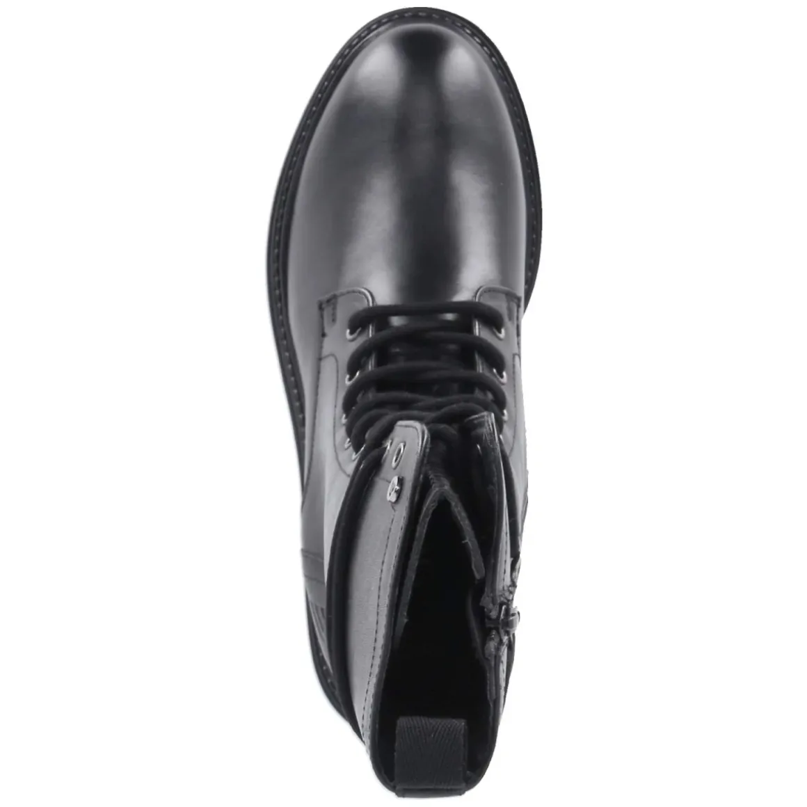 Der Bullboxer Schnürstiefel verbindet robusten Combat-Boot-Charme mit femininer Alltagstauglichkeit. Glattes Echtleder und eine verstärkte Ferse sorgen für langlebige Formstabilität, während die runde Spitze und der 4,5 cm hohe Blockabsatz ein komfortables Abrollen ermöglichen. Der Schaft misst etwa 23 cm in der Höhe und rund 24 cm im Umfang, ideal für eine definierte Silhouette ohne einzuengen. Ein zusätzlicher Reißverschluss neben der Schnürung erleichtert den Einstieg, die rutschfeste Profilsohle bietet verlässlichen Grip. Leichtes Futter wärmt an kühlen Tagen, die Decksohle aus Leder unterstützt ein angenehmes Fußklima. Dezente Reptilprägung an Zunge und Fersenriemen setzt einen modernen Akzent. Fällt normal aus. Modetipp: Mit feiner Strumpfhose, Minikleid und Oversize-Wollmantel entsteht ein spannender Kontrast zwischen derben Boots und eleganter Linie.