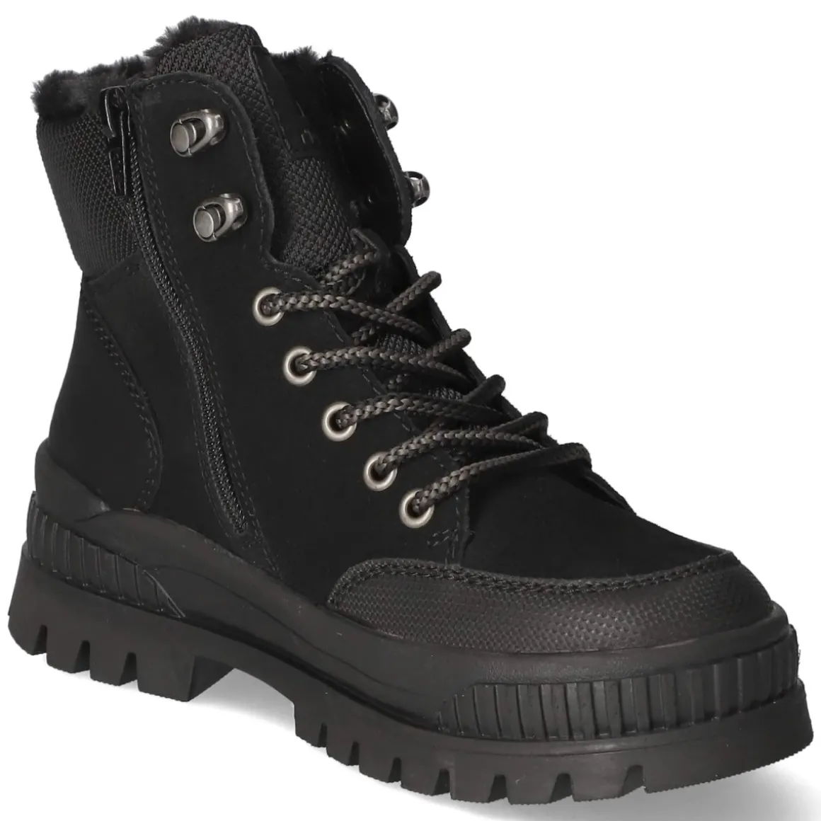 Diese Rieker Schnürstiefeletten für Damen verbinden einen modernen Material-Mix aus Leder und Synthetik mit durchdachter Funktion für kalte Tage. Das warme Futter und die wasserabweisende TEX-Ausstattung schützen bei winterlichem Wetter, während die textile Decksohle und das herausnehmbare Fußbett für angenehmen Tragekomfort sorgen. Die runde Schuhspitze lässt den Zehen Raum, der verstärkte Zehen- und Fersenbereich erhöht die Langlebigkeit. Schnürsenkel in Kombination mit seitlichem Reißverschluss erleichtern den Einstieg und sichern den Halt. Die flexible, rutschfeste Profilsohle gibt Trittsicherheit auf nassem Asphalt. In klassischem Schwarz und mit normal ausfallender Passform entsteht ein Look für den perfekten Auftritt zwischen Alltag und Anlass. Modetipp: Zu schmaler Denim, feinem Rollkragen und einem strukturierten Wollmantel entsteht ein clean-urbanes Ensemble.