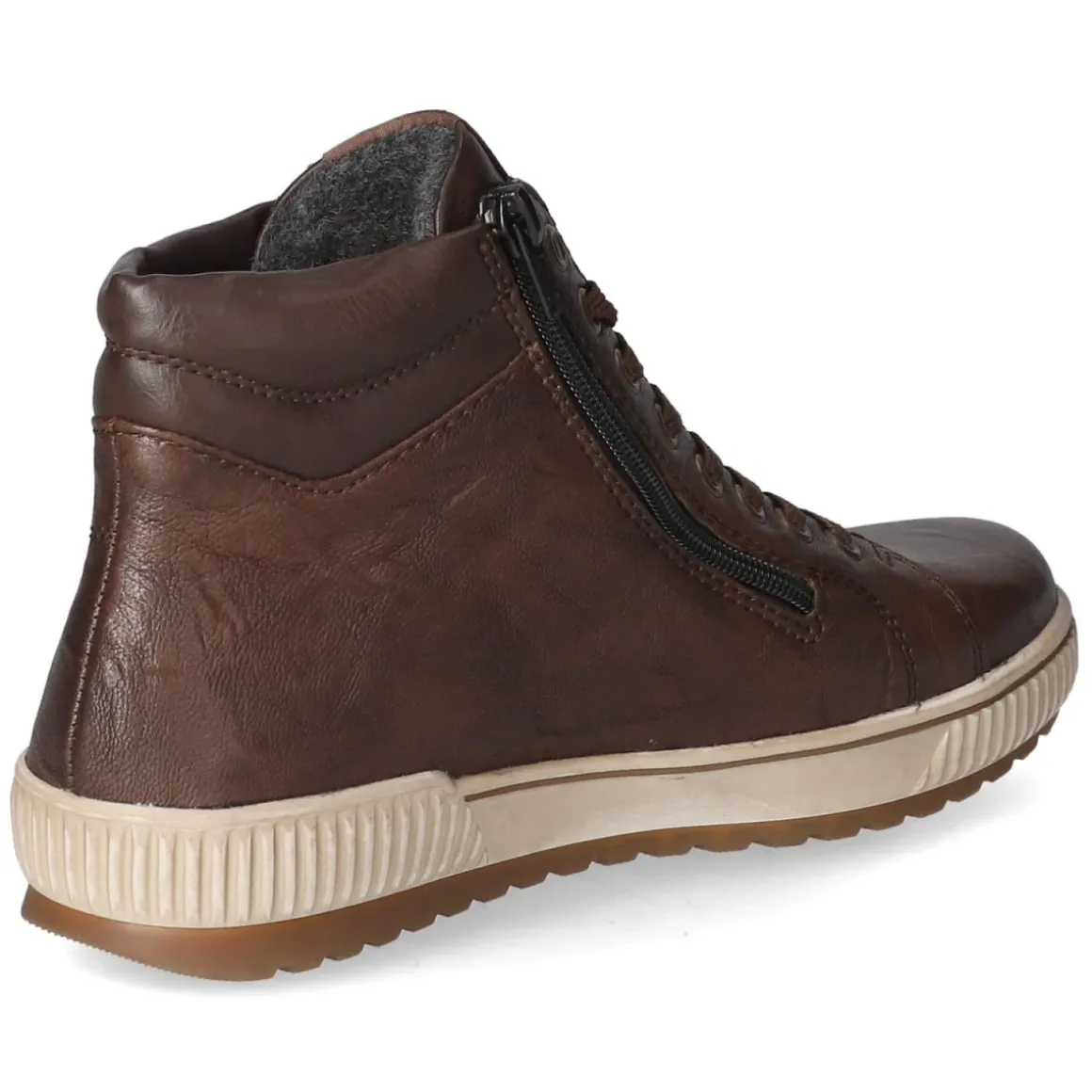 Zeitlos und durchdacht präsentiert sich diese Remonte Schnürstiefelette in warmem Braun aus geschmeidigem Glattleder. Die runde Spitze und der normale Schnitt gewährleisten ein bequemes Tragegefühl, während die TEX-Ausstattung wasserfest und atmungsaktiv wirkt – ideal für unbeständige Tage. Leichtes Textilfutter und ein gepolsterter Einstieg sorgen für angenehme Wärme und Komfort. Praktisch: Schnürung kombiniert mit zwei Reißverschlüssen für schnellen Einstieg und passgenauen Halt, dazu ein verstärkter Fersenbereich. Die textile, gepolsterte Wechseldecksohle verwöhnt bei jedem Schritt, unterstützt von einer flexiblen, rutschhemmenden Laufsohle. Modetipp: Zu einem cremefarbenen Strickkleid und einem Camel-Mantel entsteht ein harmonischer City-Look, der die Braunnuance elegant aufgreift.