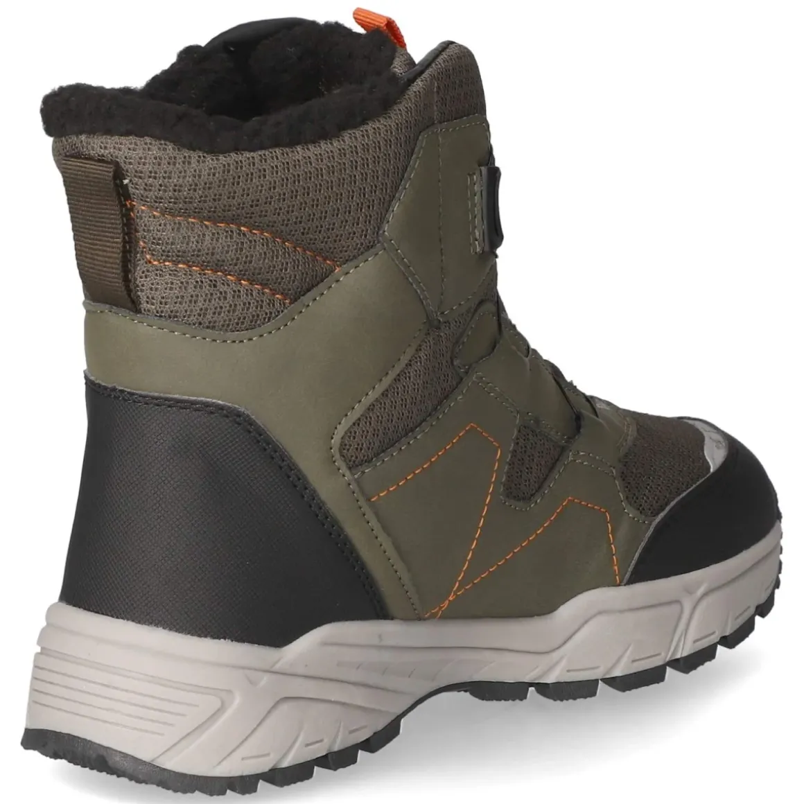 Diese Dockers Schnürstiefeletten für Kinder verbinden robusten Tragekomfort mit sportlicher Optik. Der moderne Textil-Synthetik-Mix zeigt sich in frischem Grün, akzentuiert von orangenen Details, während reflektierende Elemente die Sichtbarkeit bei Dämmerung erhöhen. Warmfutter hält kleine Füße an kalten Tagen angenehm warm. Der praktische Schnellverschluss erleichtert das An- und Ausziehen, Anziehlaschen unterstützen zusätzlich. Eine flexible, rutschfeste Profilsohle gibt sicheren Halt auf nassem Asphalt und rutschigen Spielplatzwegen. Runde Schuhspitze sowie verstärkter Zehen- und Fersenbereich bieten Schutz und Langlebigkeit, die wasserabweisende Ausrüstung trotzt leichten Schauern. Das Wechselfußbett passt sich dem Alltag an und lässt Raum für eigene Einlagen. Die Passform fällt normal aus. Modetipp: Mit Funktionsparka, kuscheliger Strickmütze und dunkel gewaschener Denim entsteht ein lässiger Outdoor-Look.