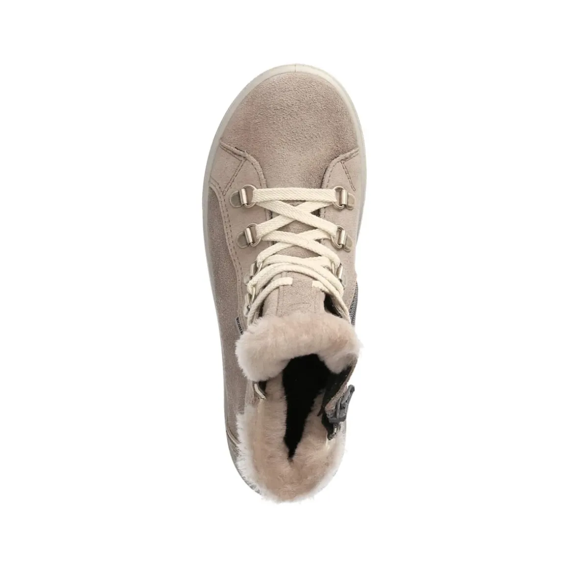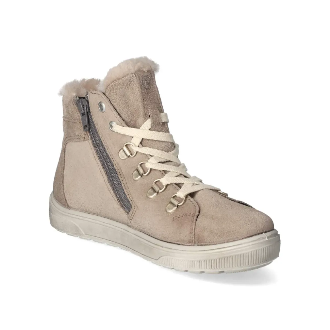 Die Schnürstiefeletten MAREN von Ricosta vereinen funktionalen Wetterschutz und kindgerechten Komfort in einem zeitlosen Taupe. Das weiche Rauleder umschließt den Fuß, während Ricosta-TEX die kleinen Schritte zuverlässig wasserfest und zugleich atmungsaktiv begleitet. Innen sorgt warmes Futter mit kuscheligem Fellbesatz am Schaft für Behaglichkeit, die textile Wechseldecksohle und das komfortable Wechselfußbett bringen zusätzliche Dämpfung und lassen sich zum Lüften einfach herausnehmen. Dank bequemen Reißverschlusseinstieg gelingt das An- und Ausziehen schnell, die Schnürung optimiert den Sitz. Die rutschhemmende, flexible Profilsohle gibt sicheren Halt, die runde Spitze schafft Zehenfreiheit. Fällt normal aus. Modetipp: Zu Cordhose, Parka in Erdtönen und groben Stricksocken entsteht ein lässiger Winterlook.