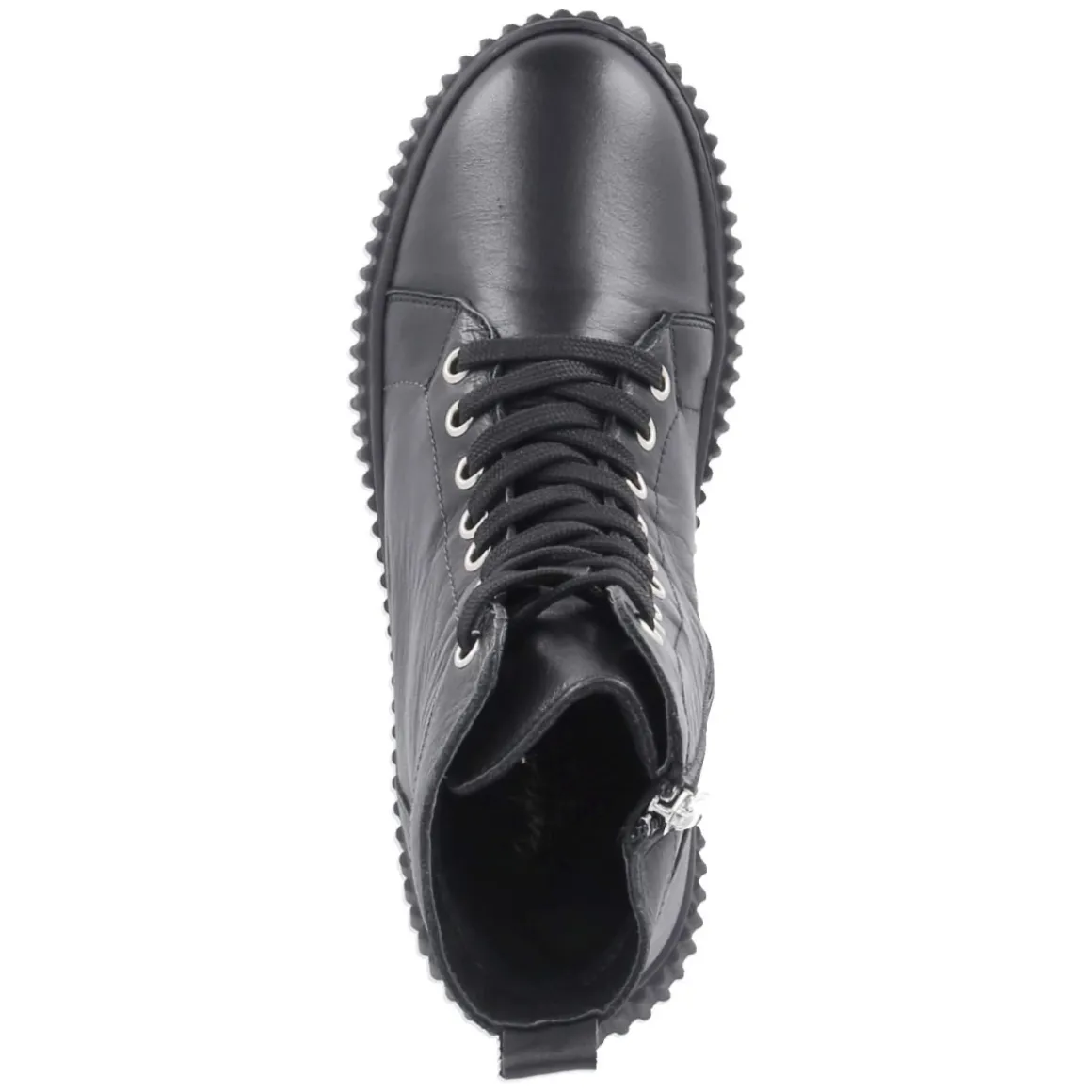 Die schwarzen Schnürstiefeletten von Andrea Conti verbinden puristische Linien mit alltagstauglichem Komfort. Weiches Glattleder und eine runde Schuhspitze sorgen für ein zeitloses Erscheinungsbild, während die Kombination aus Schnürsenkeln und praktischem Reißverschluss ein müheloses An- und Ausziehen ermöglicht. Die Plateausohle mit seitlichen Rillen bietet spürbaren Grip, die verstärkte Ferse zusätzliche Stabilität. Mit 4,5 cm Absatzhöhe gewinnt der Look sanft an Höhe, bleibt dank Plateau aber angenehm ausbalanciert. Die Decksohle aus Leder und das komfortable Wechselfußbett schaffen ein fußfreundliches Klima, besonders an langen Tagen. Trotz robuster Anmutung überzeugt das Modell als relaxtes Leichtgewicht und fällt in der Größe normal aus. Modetipp: Zu cropped Straight-Jeans und einem Oversize-Wollmantel entsteht ein souveräner City-Look; alternativ verleiht ein Midikleid in Satin einen spannenden Stilbruch.